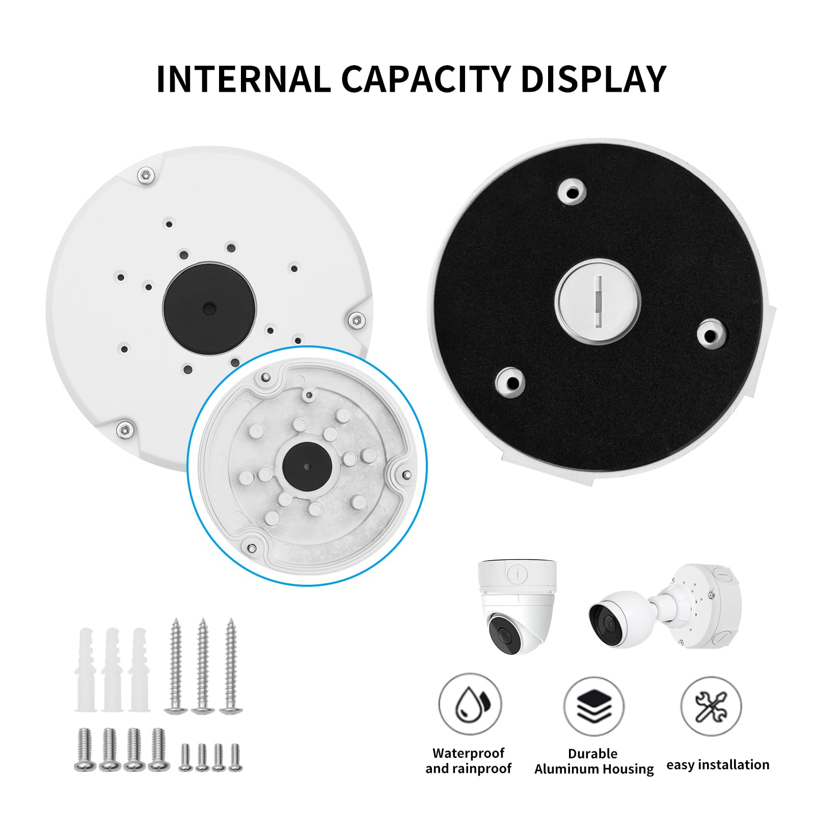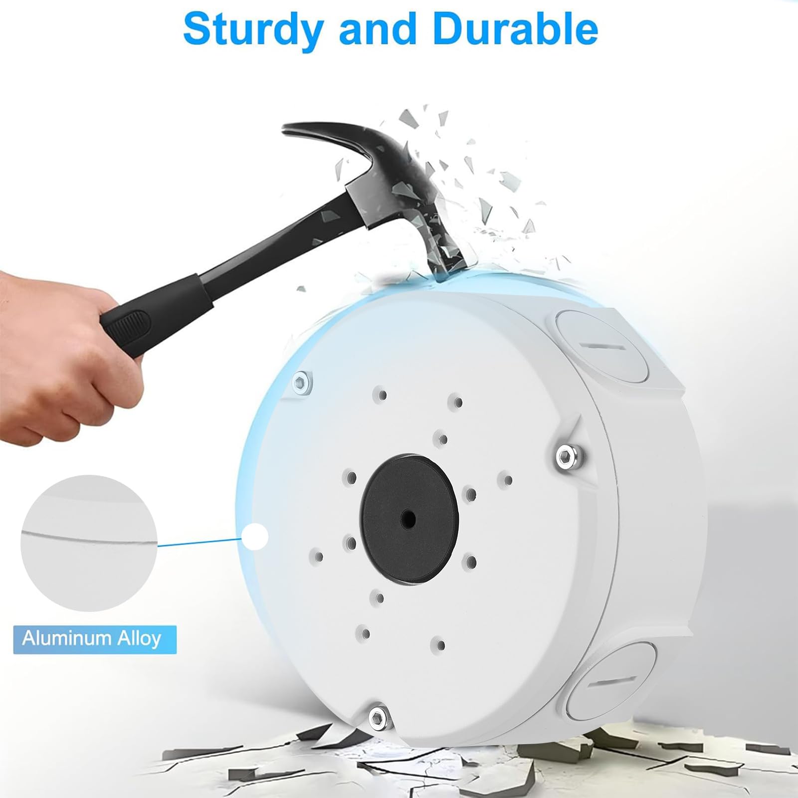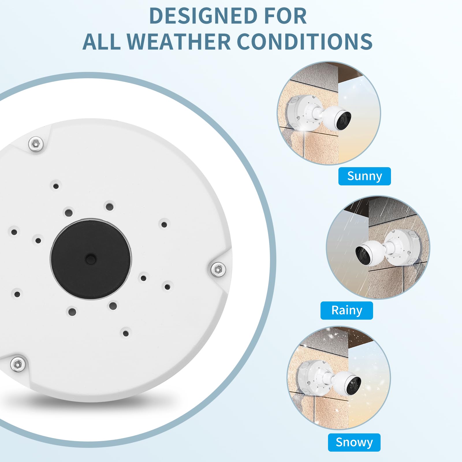 【Compact & Durable】Crafted from high-quality metal materials, our security camera bracket outdoor is built to last. It boasts a compact size, measuring Diameter 4.7 inches and Height 1.5 inches. This ensures that the junction box is not obtrusive and complements your camera setup seamlessly while providing long-lasting durability and reliable protection.