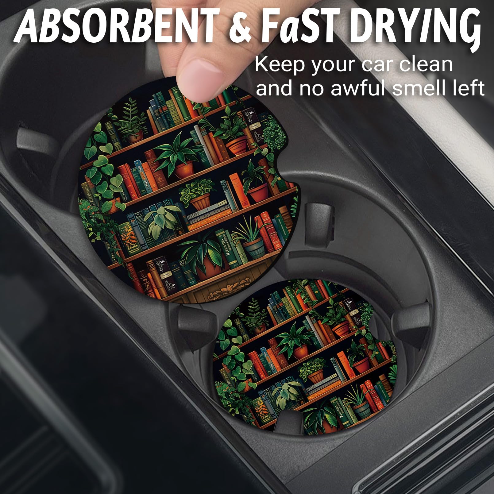 Fashion Pattern: This cup holder coasters for car features a Vintage Bookshelf pattern, adding a delightful touch and a decorative element to your car's interior. They are good car accessories which can enhance interior aesthetics