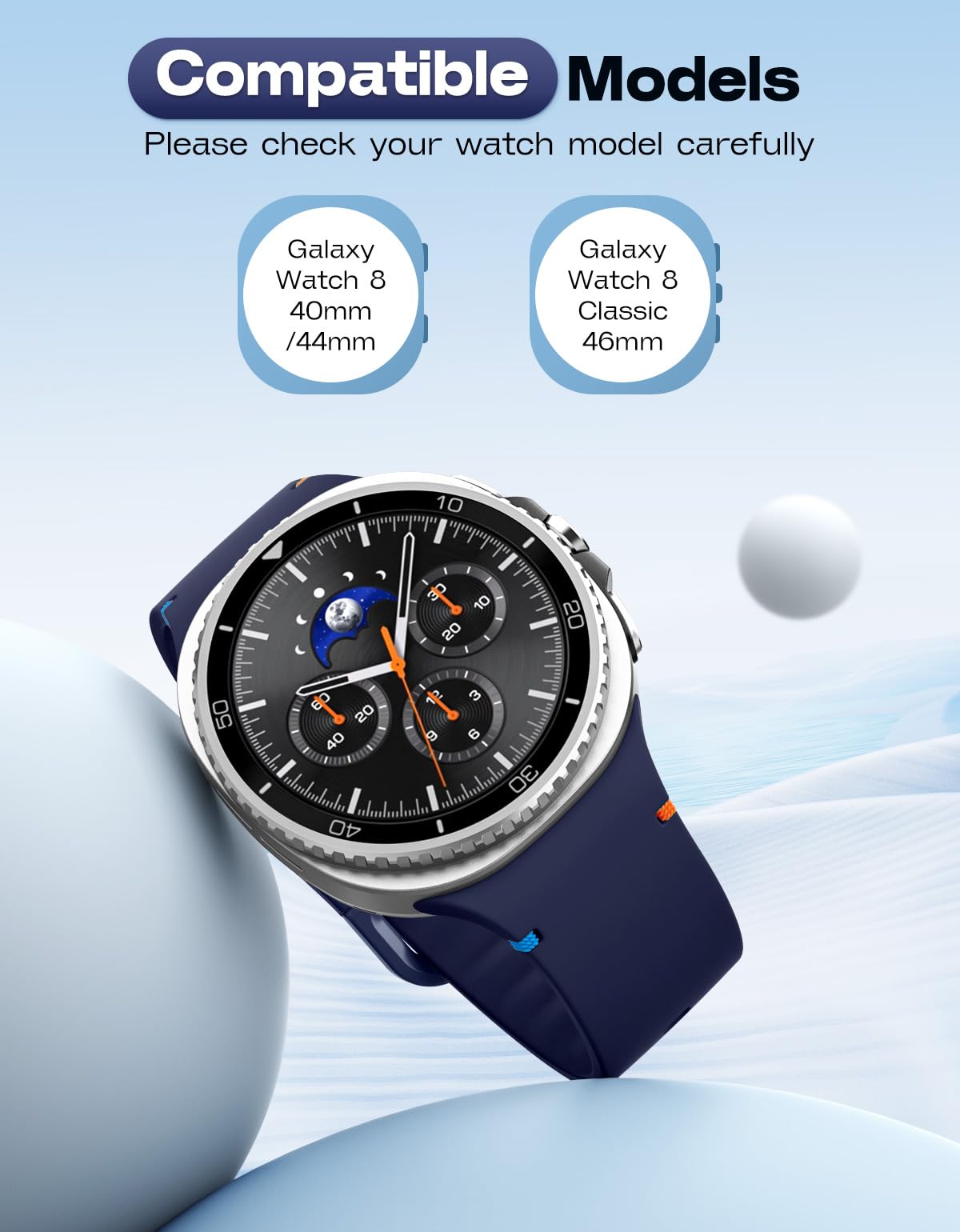 Compatible Models: This soft silicone band is only compatible with Samsung Galaxy Watch 8 band 40mm/44mm and Galaxy Watch 8 Classic band 46mm. Note: Smartwatches are not included.
