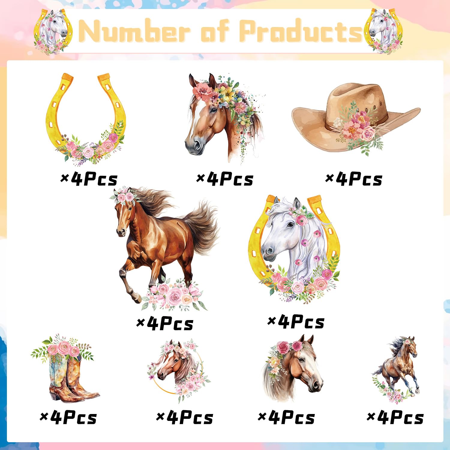 Horse Cupcake Decorations: You will receive 36 pieces of beautiful party cake decorations. 9 different designs of horse patterns, 4 pieces each. Beautiful pattern and ample quantity for birthday parties.