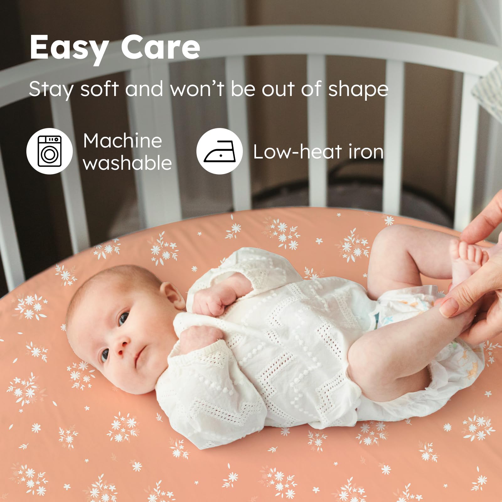 Easy Care & Sustainable: Made from pre-shrunk fabric, our bassinet mattress sheets resist fading, pilling, and shrinking, even after hundreds of machine washes. With double-stitched edges and corners, our bassinet crib sheets are built to last, staying with your baby through every stage.
