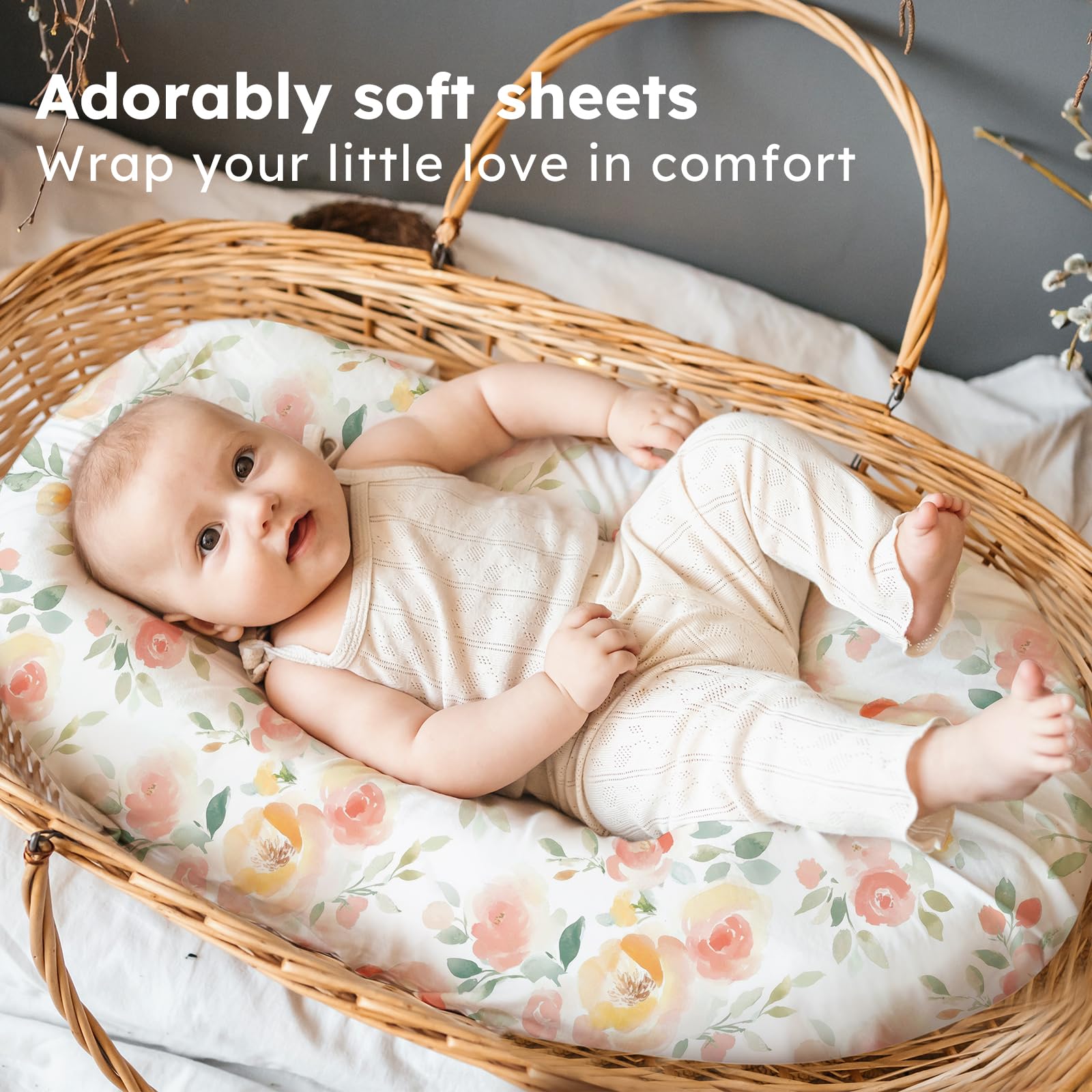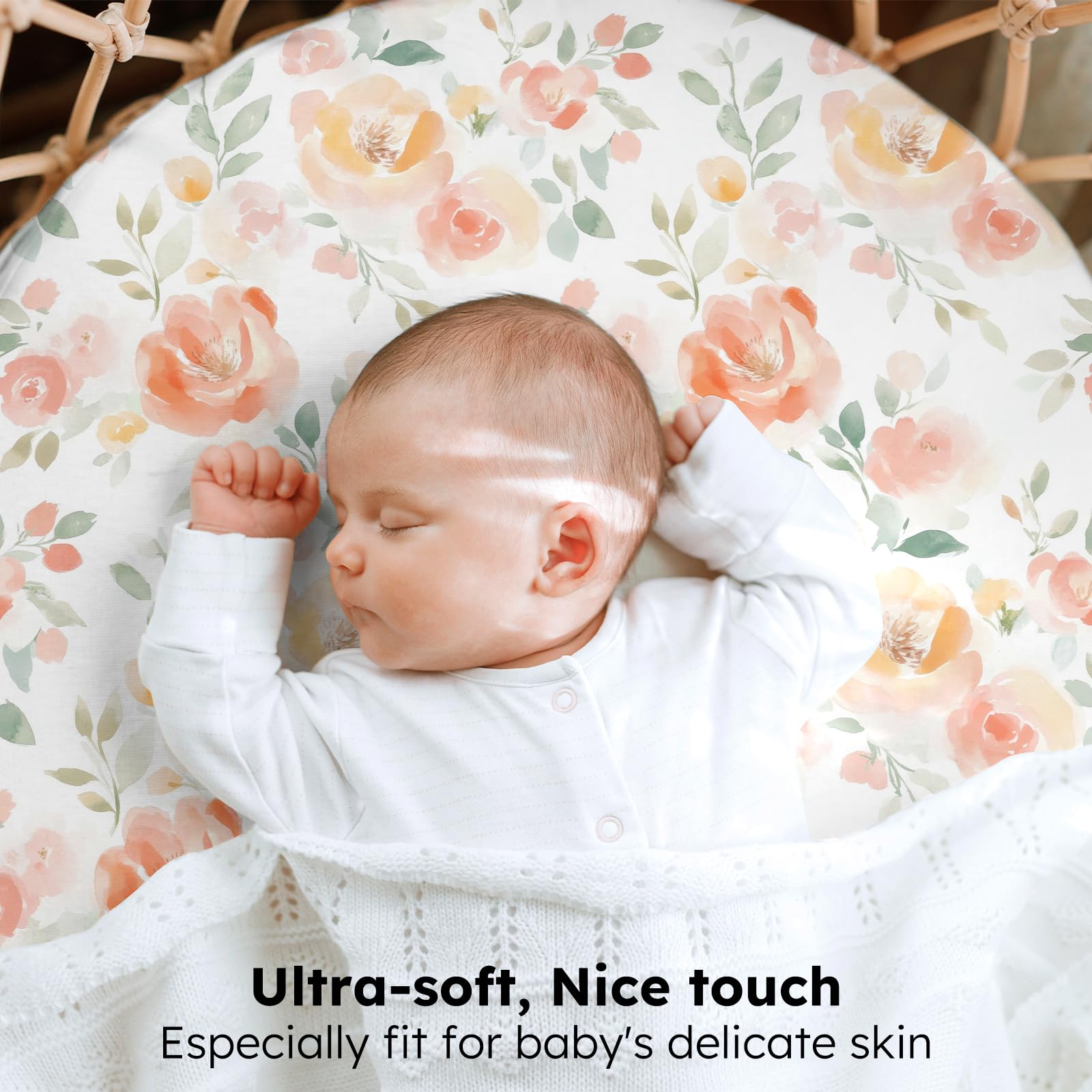 Soft & Skin-friendly Fabric: Crafted from premium microfiber with advanced knitting techniques, our baby bassinet sheets are ultra-soft and gentle enough for delicate and sensitive skin. Designed to keep your baby comfortable and relaxed, they help maintain a restful sleep environment and daytime moments full of joy.