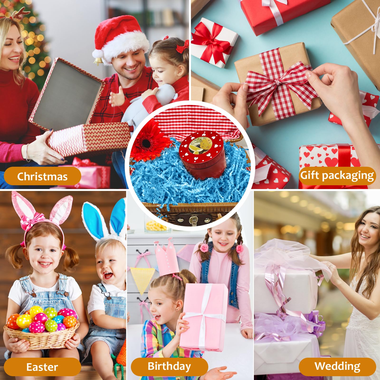 1.Package Includes:1/2 LB (8 ounces) crinkle paper filler, you will have enough filler to fill your gift boxes, gift baskets, gift bags, make your gifts more beautiful