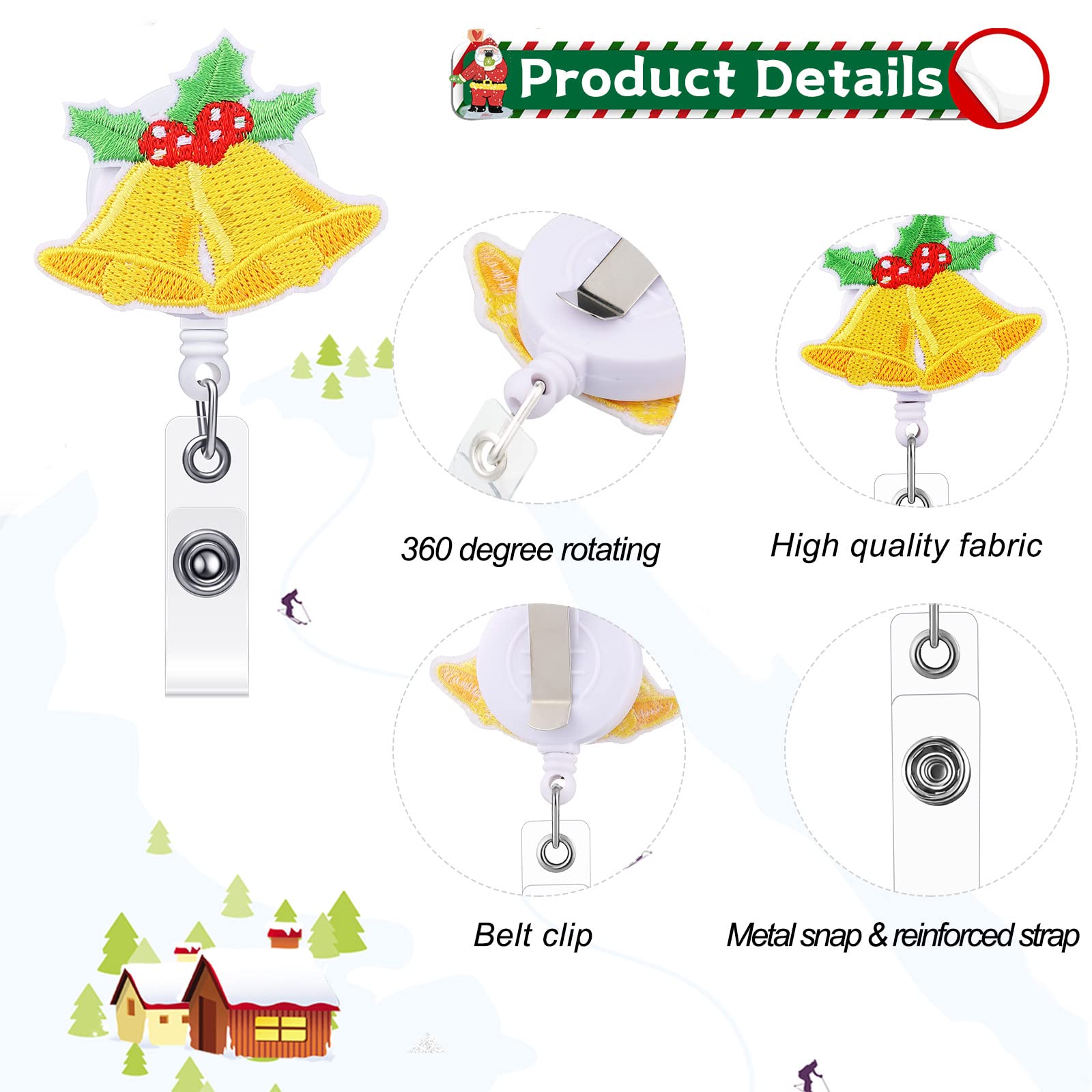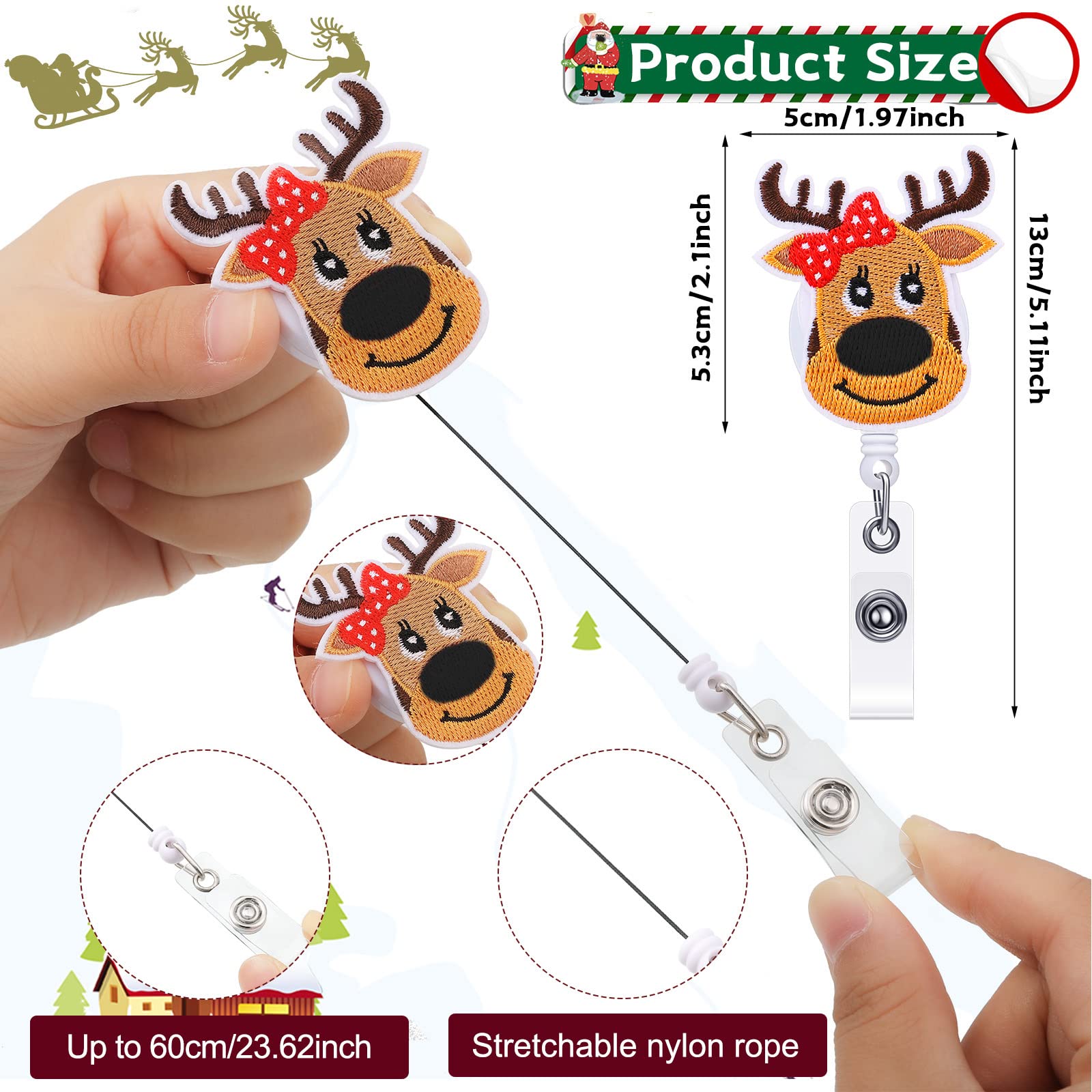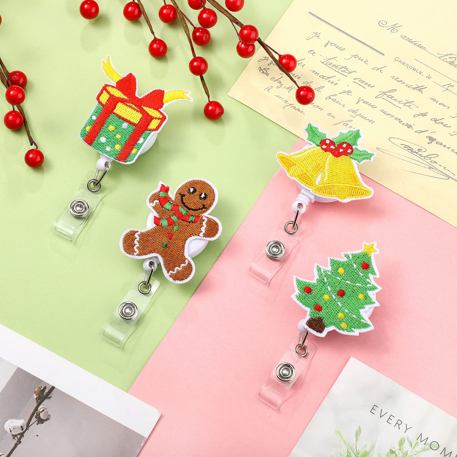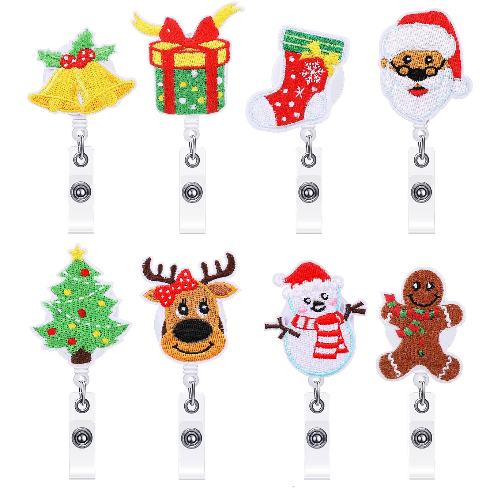 Various patterns: these retractable badge reels are designed into 8 different shapes and patterns, including stockings, snowman, Santa Claus, Christmas tree, gift box, and gingerbread man, which will contribute to the festive atmosphere during Christmas