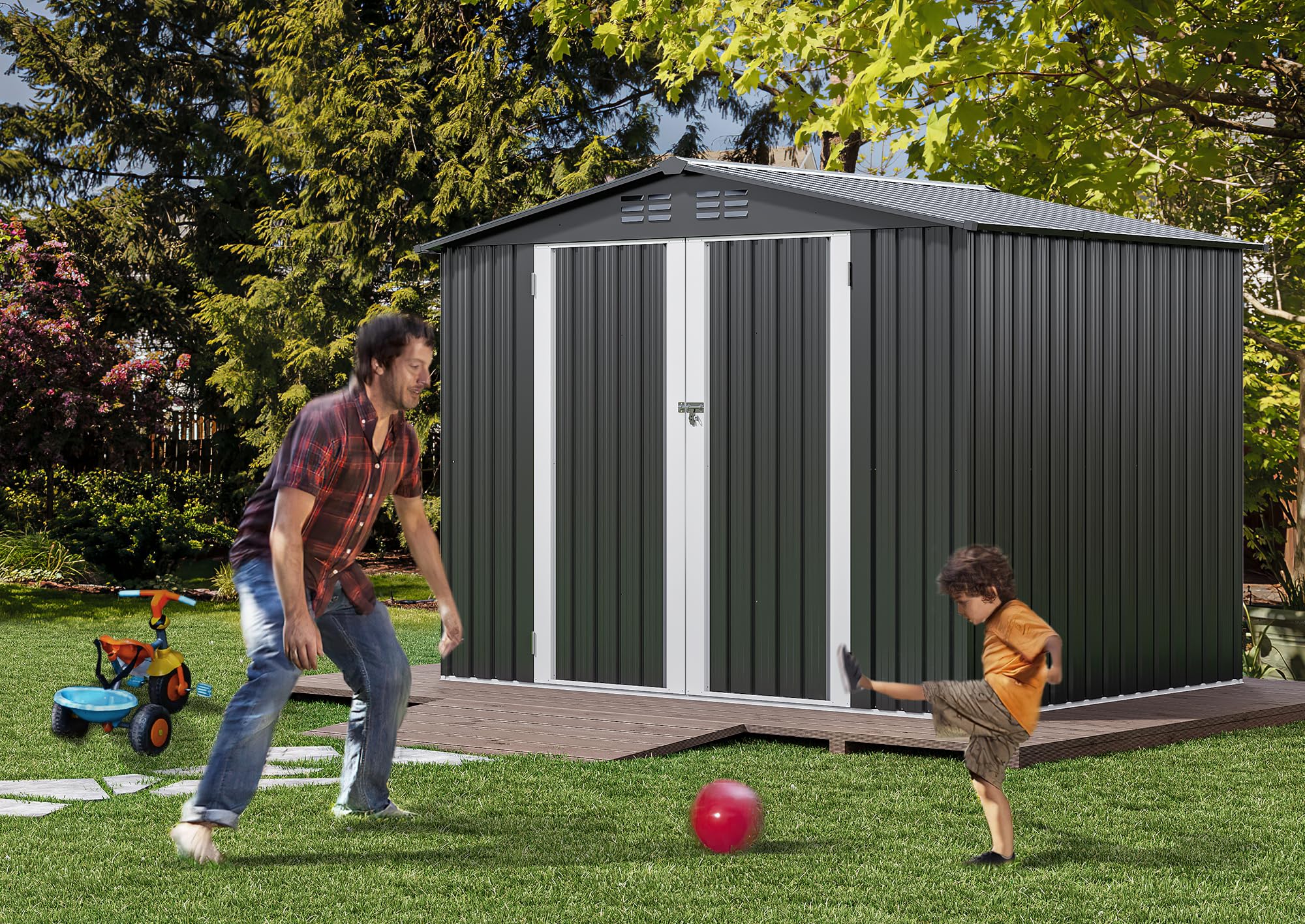 All-Weather Practicality: Thickened galvanized steel and a durable frame harmonize to offer this DWVO outdoor storage shed great rust protection; Overlapping wall panels work with tilted roof to prevent rainwater from gathering or seeping in for year-round use
