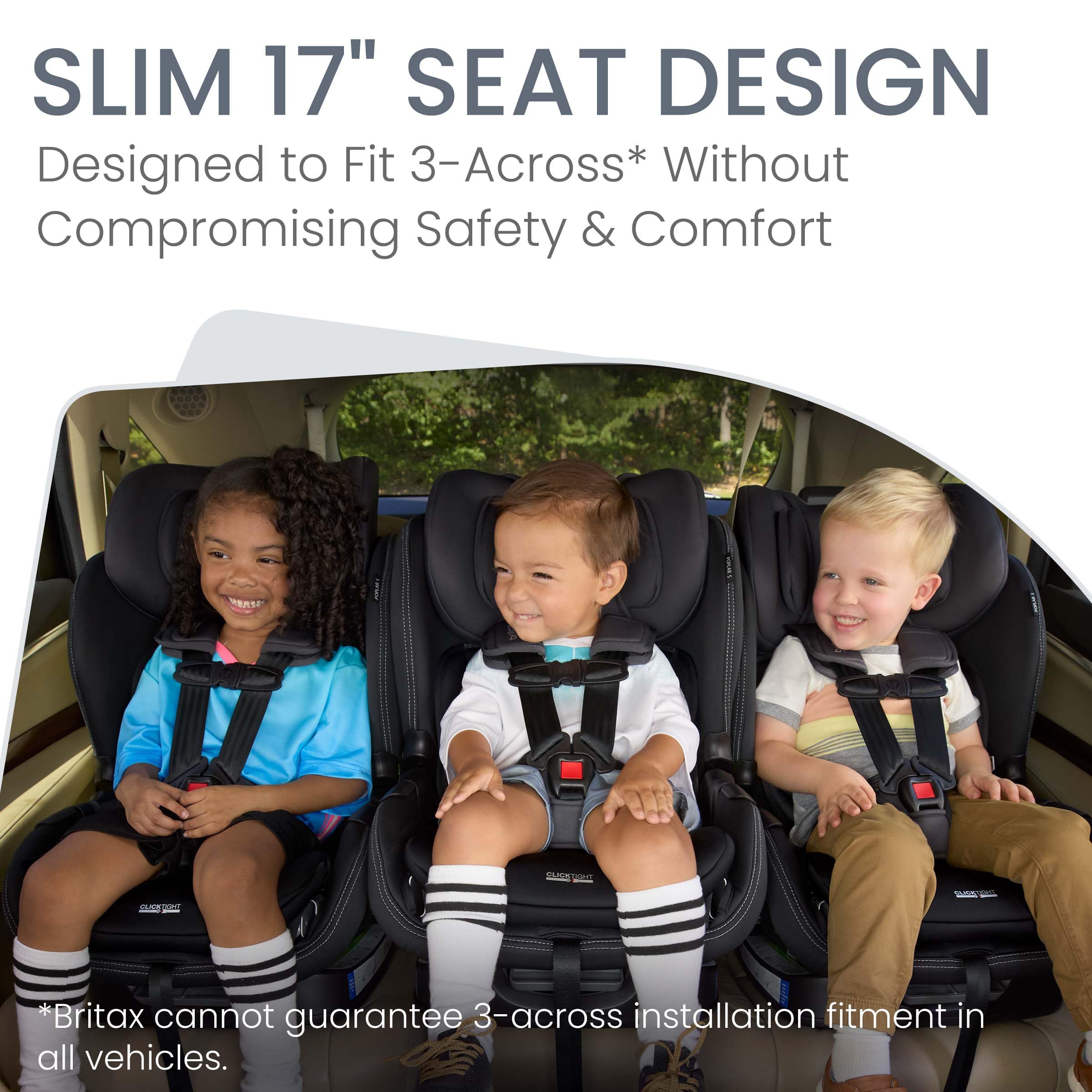 SpaceSaver Design: Slim 17" seat is designed to fit 3-across* without compromising on trusted Britax safety and premium comfort. *Britax cannot guarantee 3-across installation fitment in all vehicles