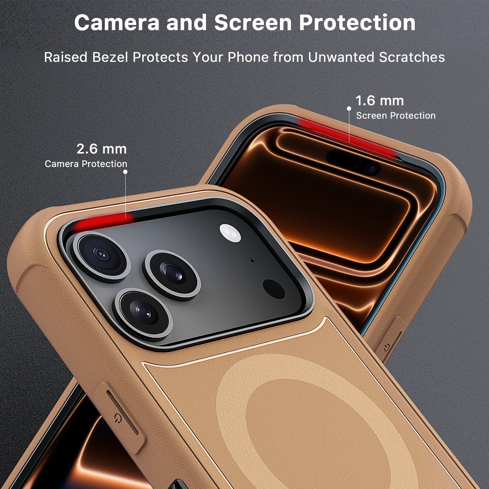 Extra Layer of Protection Case for iPhone 17 Pro Max:The 2.6mm Camera and 1.6mm Screen Raised Edges, Avoid Collision. Complete with a Tempered Glass Screen Protector, It Effectively Protects the Screen from Fingerprints, Smudges and Scratches.The Texturized Bumper Grip Prevents the Phone from Slipping out of Your Hands, Reducing the Risk of Accidental Drops and Slips.