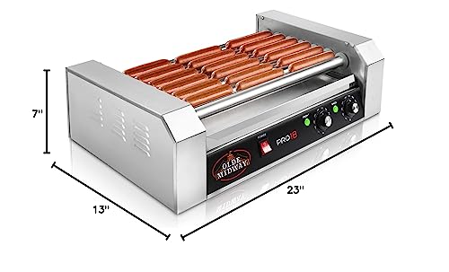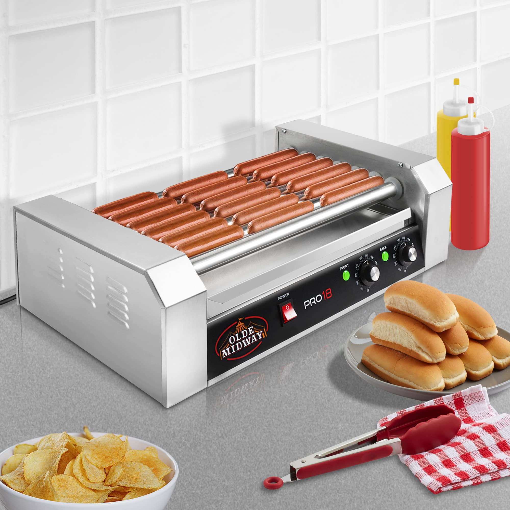 Commercial-grade: Constructed of heavy-duty stainless steel, the PRO18 commercial-grade 900-watt hot dog griller features 7 non-stick rollers that can cook up to 18 hot dogs at a time. These slow rollers are ideally suited for grilling all varieties of hot dogs, sausages, taquitos, and more.