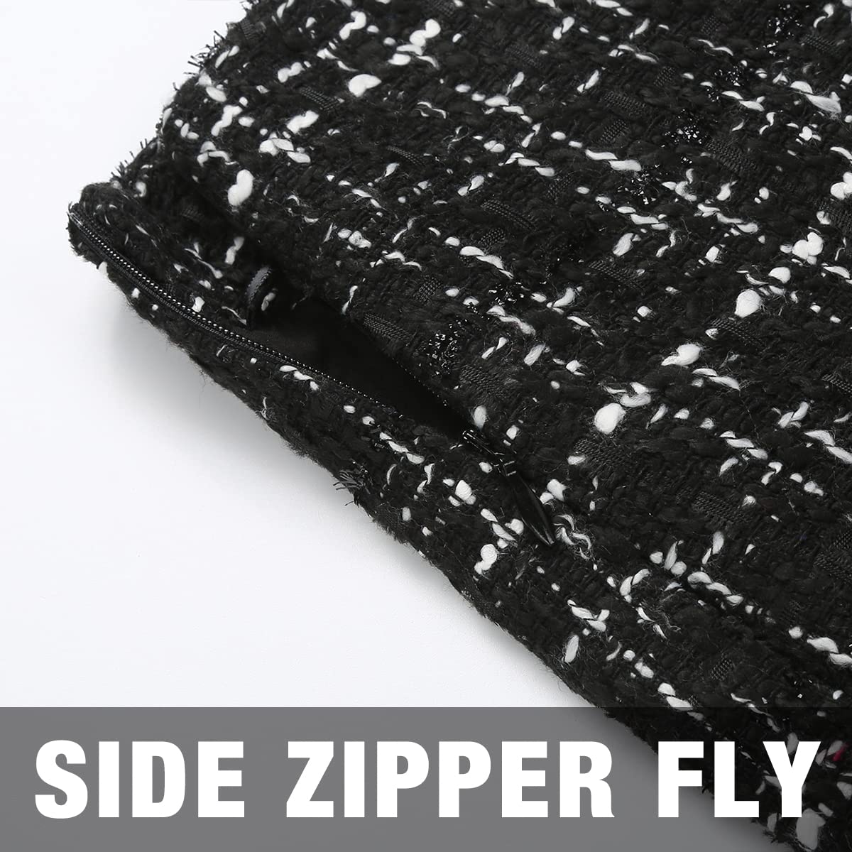 Features: High waisted, side invisible zipper fly closure, above the knee length