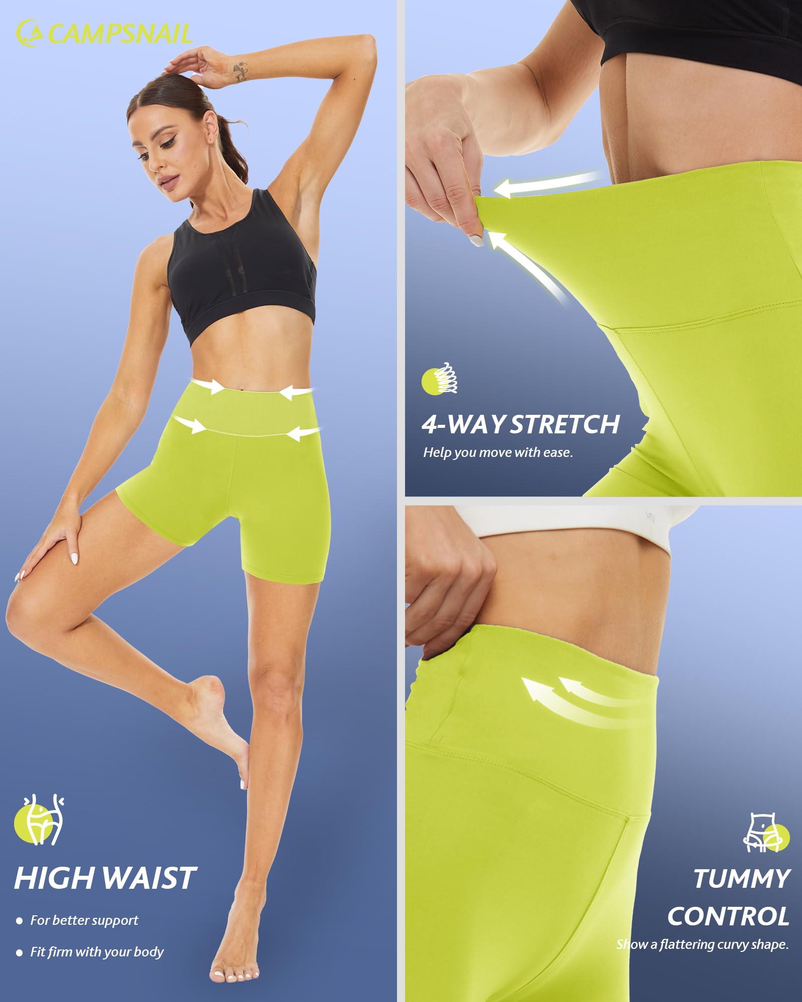 Comfortable & Soft Fabric: CAMPSNAIL 3" shorts for women are material in 92% polyester + 8% spandex, soft like the second skin, and feels like nothing on when you put them on, comfortable enough for a whole day of wearing