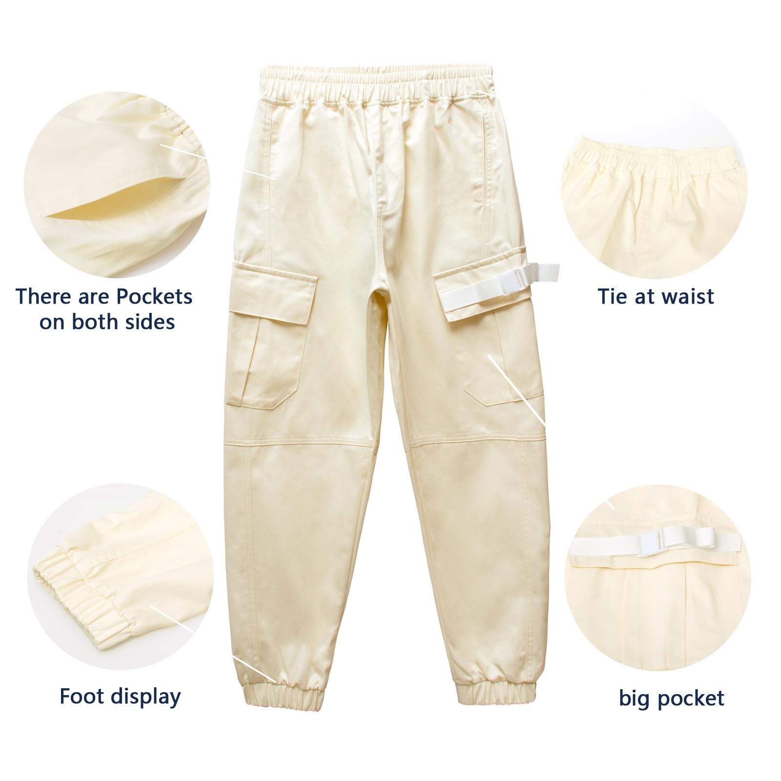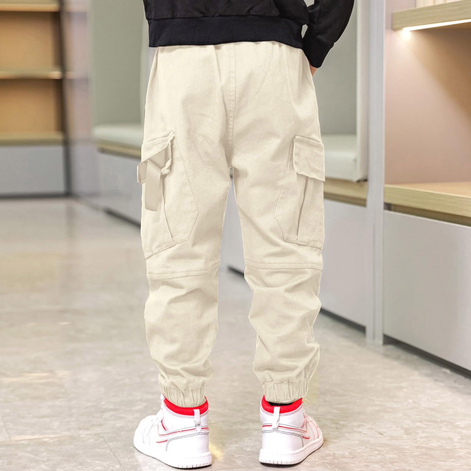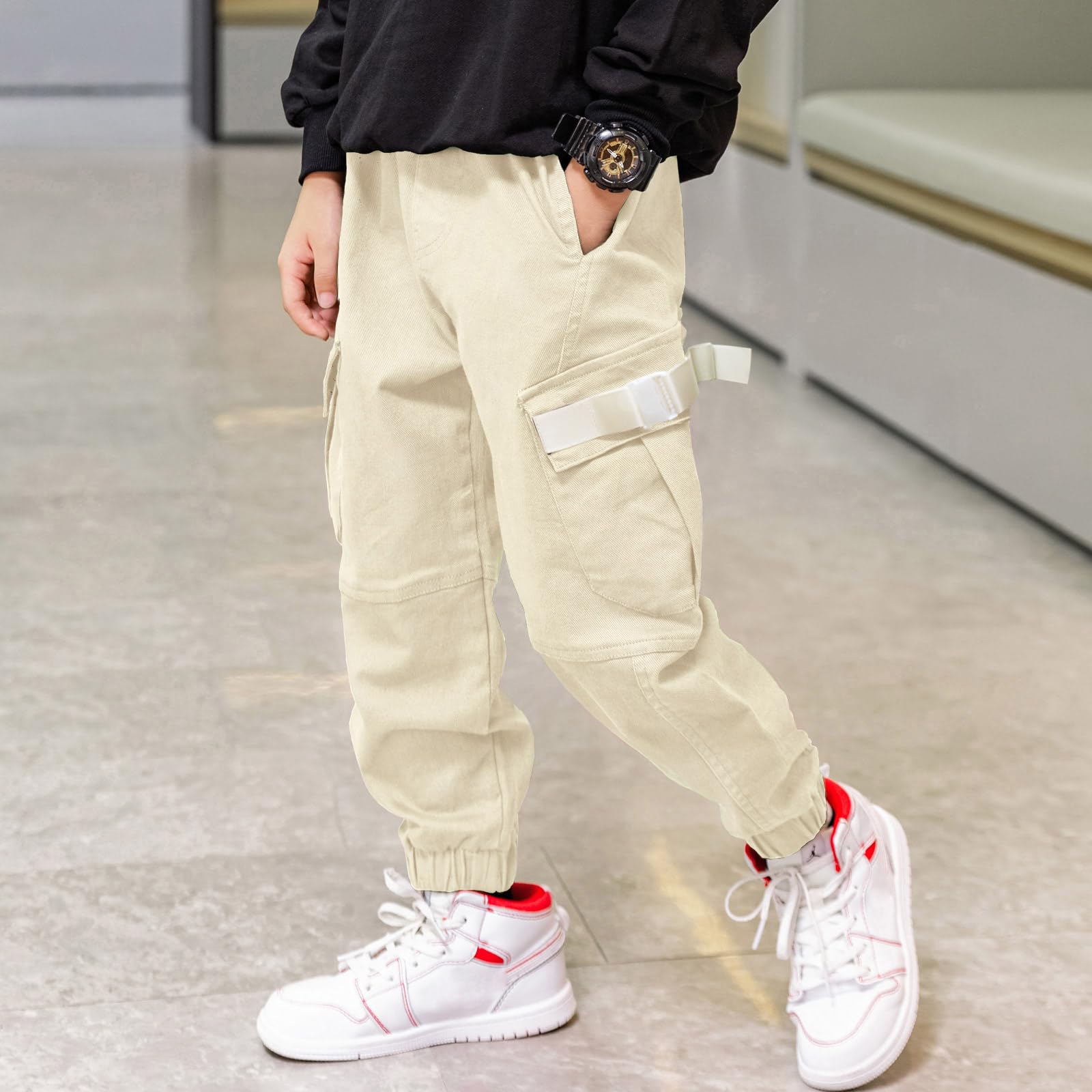Cotton Material:Soft breathable twill abric elastic cuffs for casual comfort.Boys elastic cargo pants bottoms cool clothes made of 100% cotton, soft and breathable, not easy to wrinkle.The thickness of the fabric is moderate, comfortable and breathable, boy will not feel sultry discomfort when you wear the cargo jogging pants for long time.