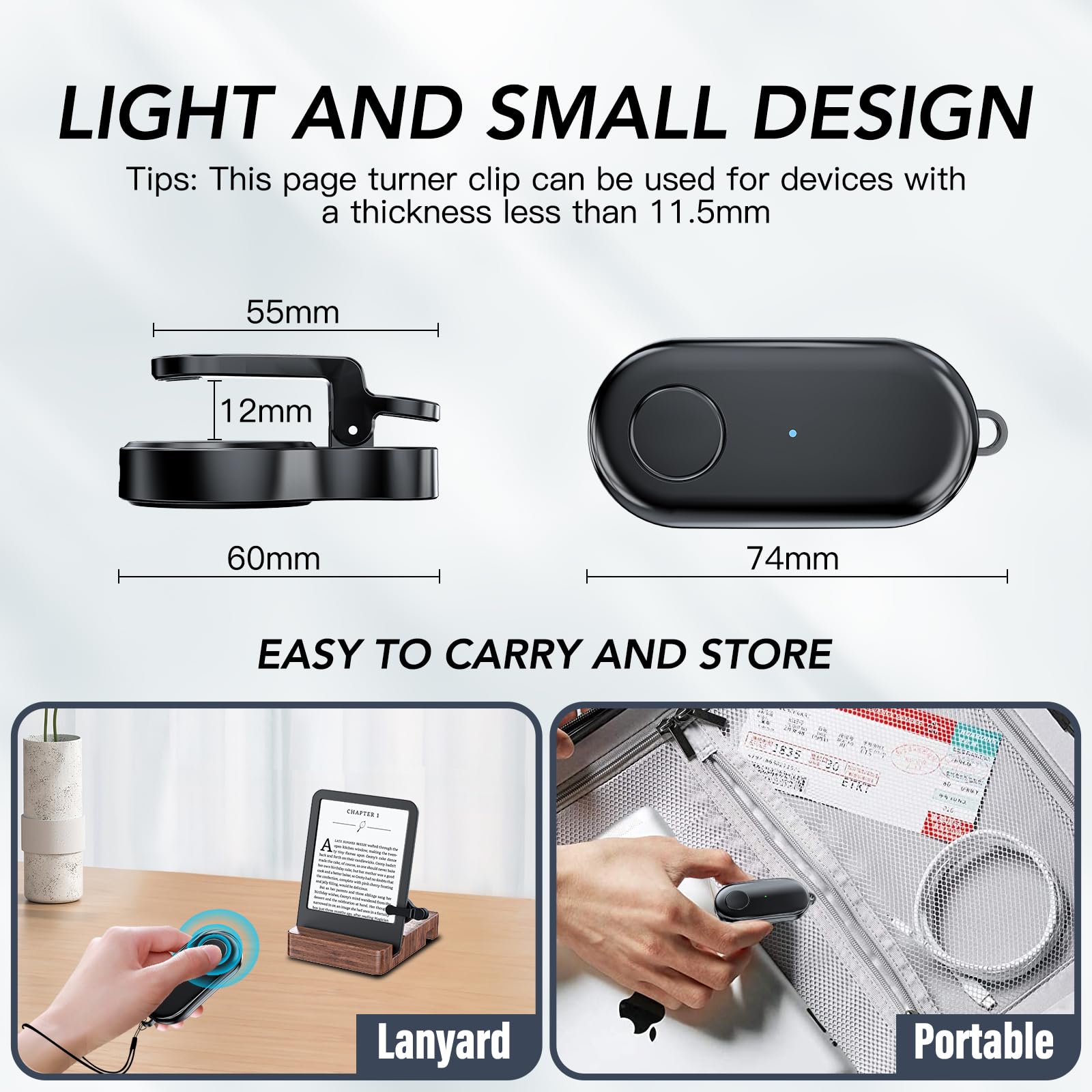 Long Battery Life: Page turner remote for Kindle has a long battery life for long hours of reading. It takes only 1.5 hours to fully charge. After fully charged,if reading 3 hours each day clip charge one time,can use 80 days and standby for up to 5 months, no need to worry about frequent charging