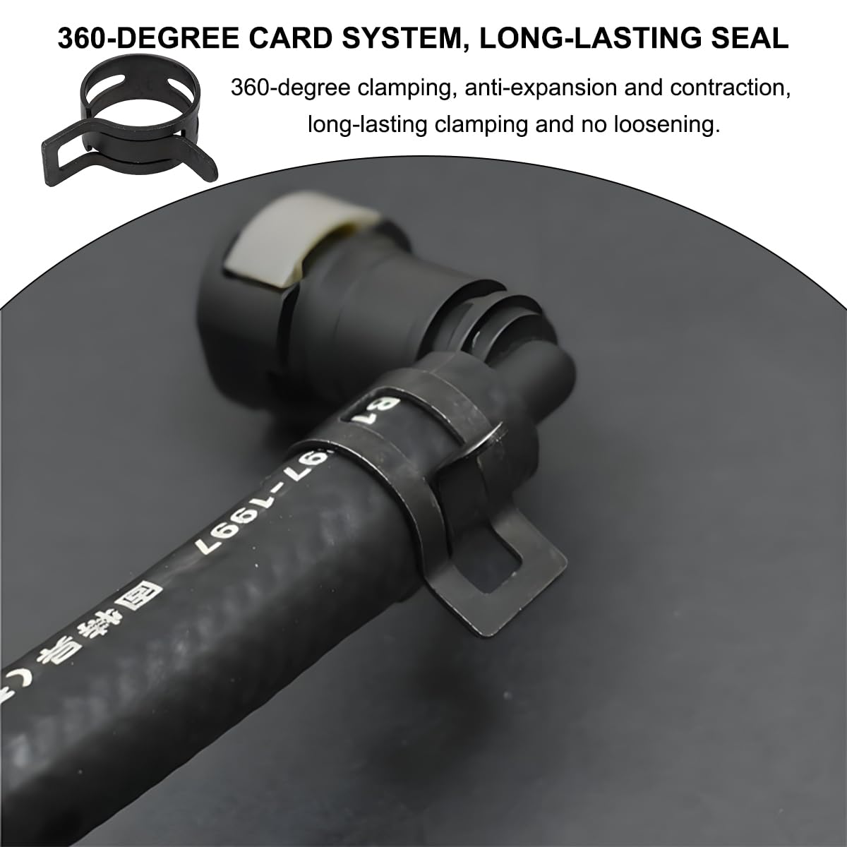 【Versatile Application】: Available in four ID diameter from 1/4" to 1/2", these clips are compatible with a wide range of hoses, including fuel, silicone, and air tubes. Whether you are working on automotive projects or household repairs, the assortment is an essential addition to your toolkit.