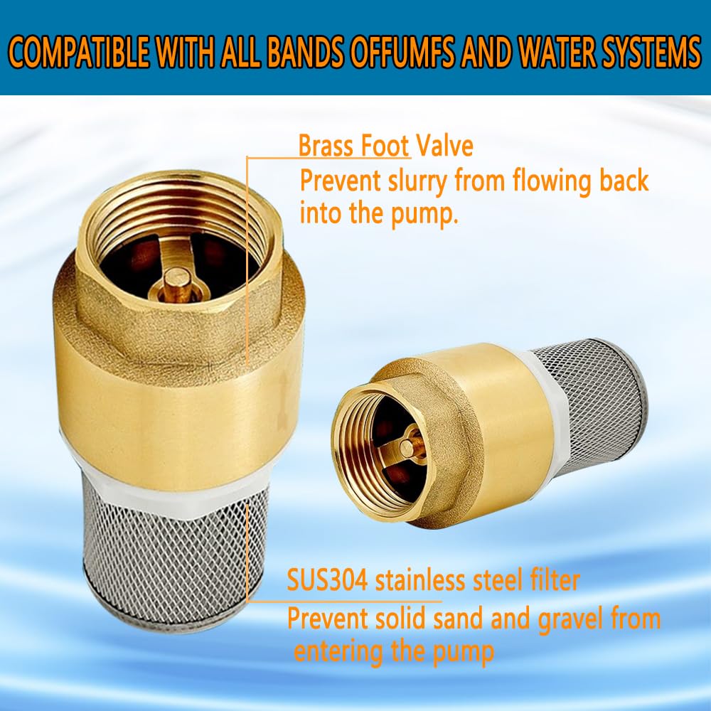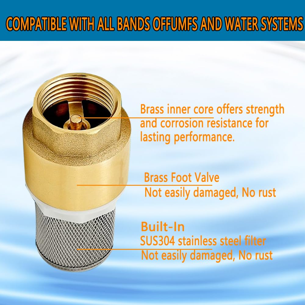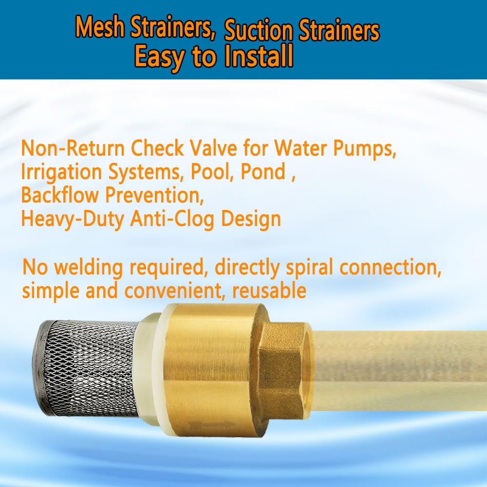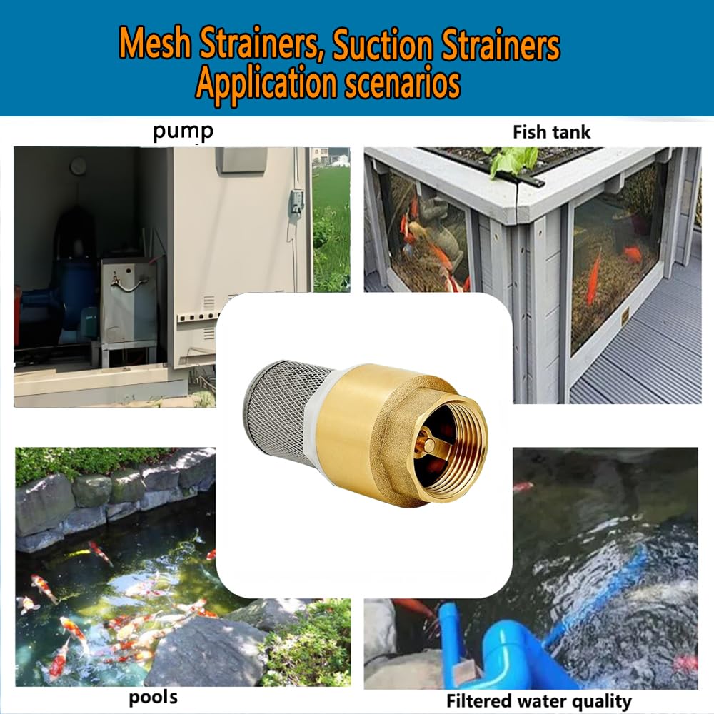 【Widely applicable】Brass check Valve Built-In filter Non-Return Check Valve for Water Pumps,Suction Strainers are applied to swimming pools, fish tanks, pools, water pumps, wells,Koi pond, etc