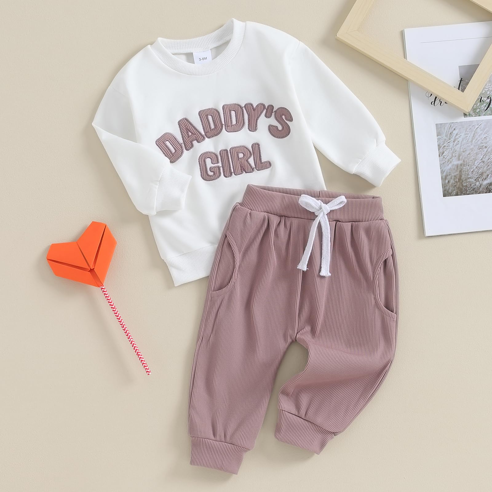 Feature: Toddler baby girl fall clothes, letter print, long sleeve sweatshirt tops, elastic waist pants, this will make your little baby more adorable and attractive.