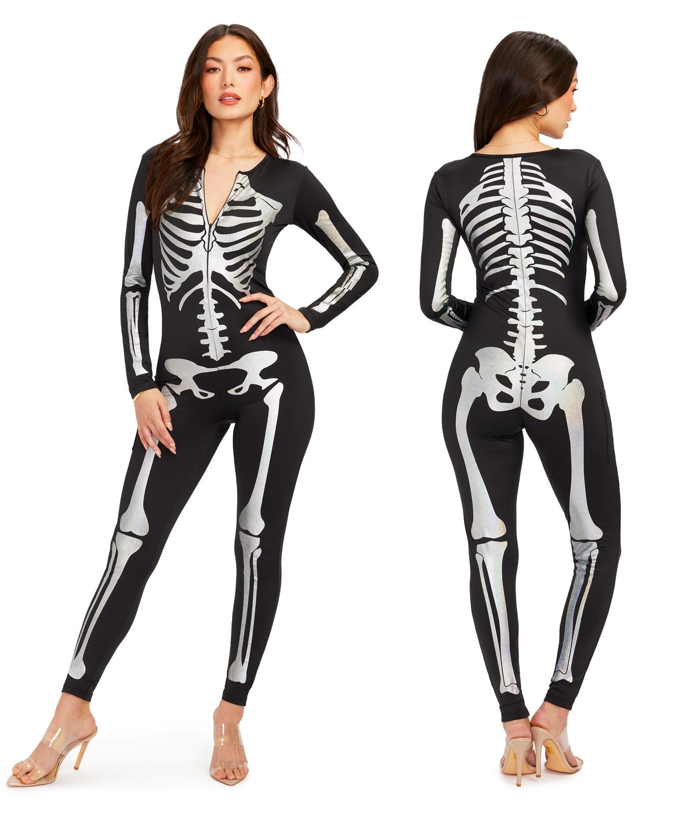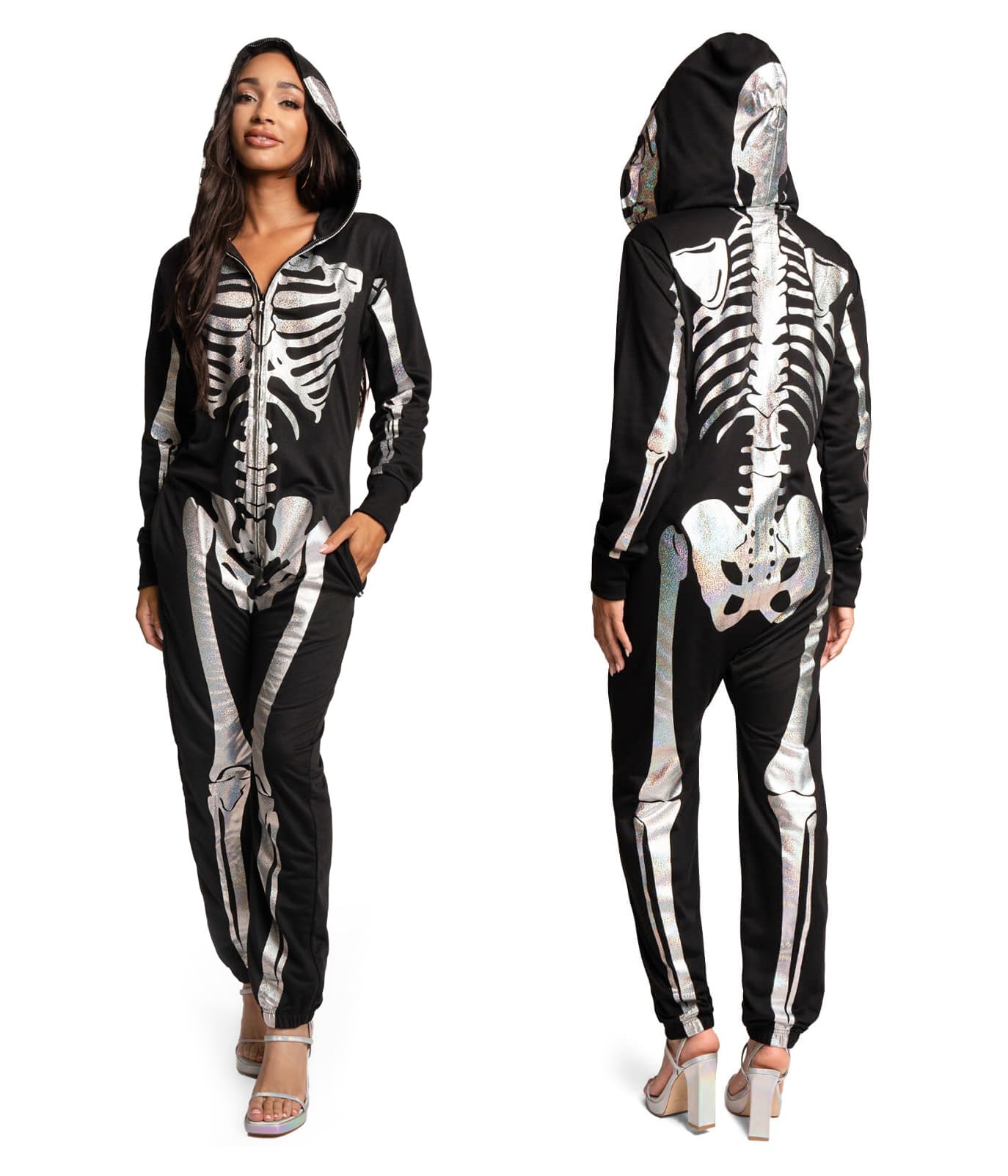 SPACIOUSLY SPOOKY Our Skeleton Costume Jumpsuit for Halloween will have you feeling and looking your very best for any spooky occasion. Whether you want to wear it for a party or stay comfy while trick or treating, the men's skeleton jumpsuit adds some easy extra fun to your attire.