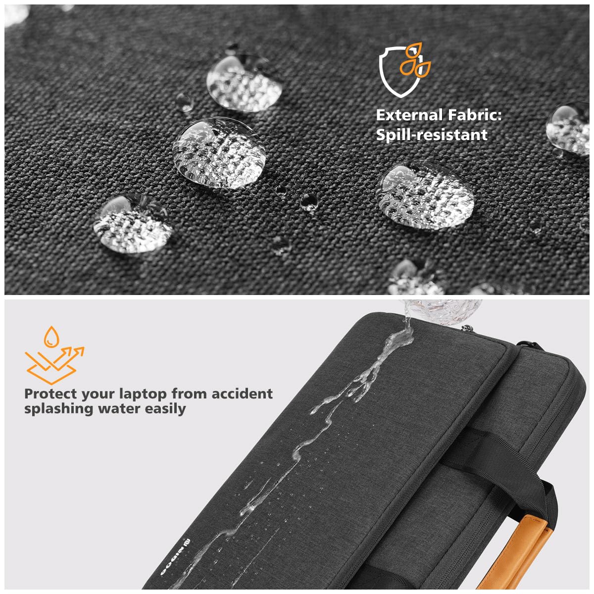 Comprehensive 360° plush protection: The main compartment is lined with thick and the edges around the zipper are designed with thick lining to absorb shocks and cushion in 360 degrees. Constructed of five layers of material, the laptop bag combines a water-resistant exterior and soft microfiber padding to protect your laptop from drops, bumps, spills and scratches.
