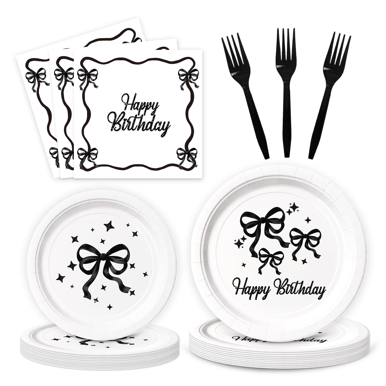 Plastic Material: The black bow party table covers are made of plastic with delicate printing technology; Portable, waterproof, splash-proof, protects your dining tables from juice or oil, stains, spilled beverages, which is a good choice for party