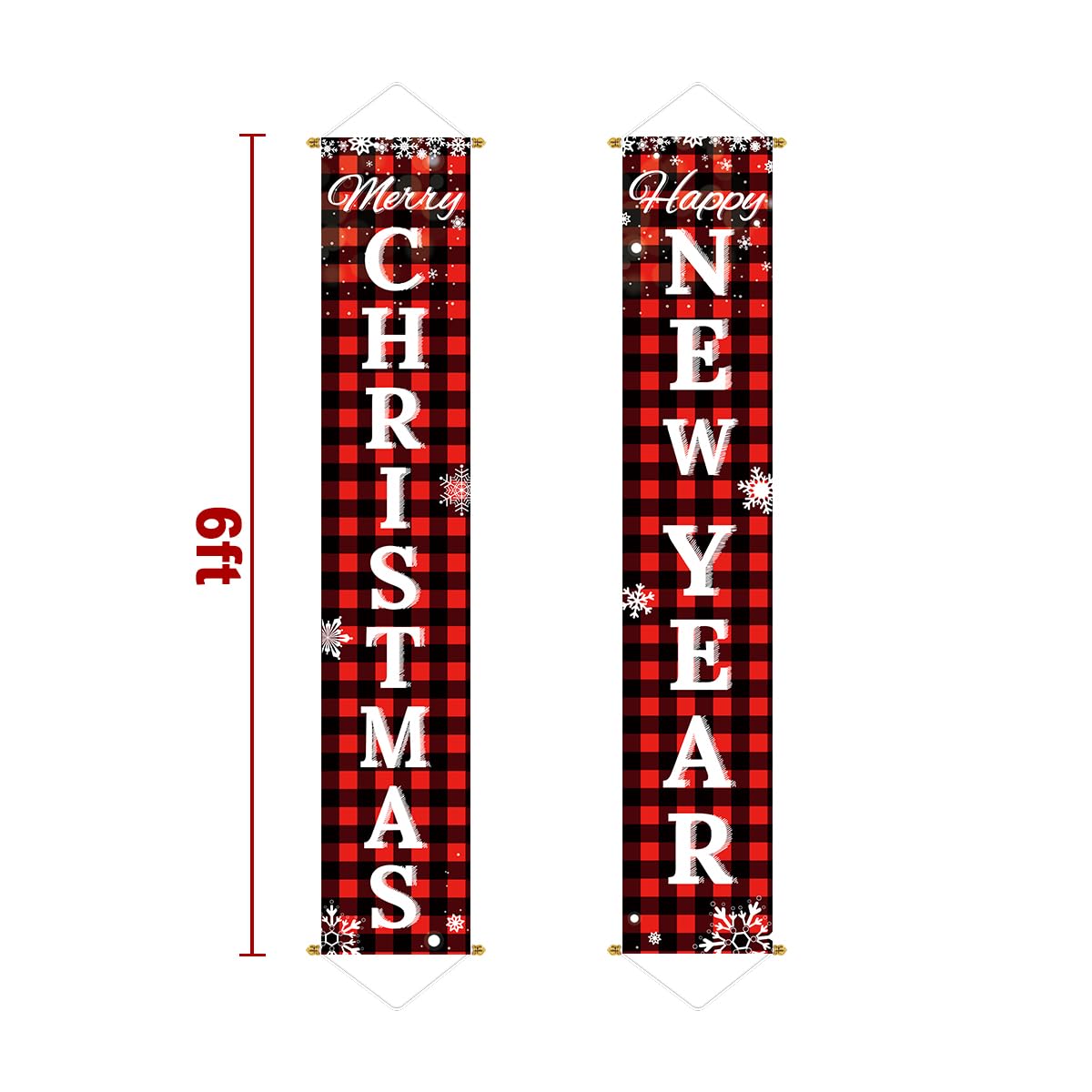 Packing list: ❖ 2 pieces Christmas decorations porch sign : ❖ 1 x "MERRY CHRISTMAS" sign banner ❖ 1 x "HAPPY NEW YEAR" sign banner ❖ Come with sturdy poles and secure ropes. Red black Christmas door banner material: ❖ Made of highly dense fabrics. Sturdy and durable. Application: ❖ For decorating home, yard, shop, office, porch as Christmas decorations. ❖ For winter door decoration, merry christmas decorations. ❖ For adults/kids, boys/girls. Size: ❖ "MERRY CHRISTMAS" banner: approx. 71" x 13" (L x W) ❖ "HAPPY NEW YEAR" banner: approx. 71" x 13" (L x W) Notice: 1: Please keep away from kids under 5 years, play under adult's supervision. 2: Please get away from fire.
