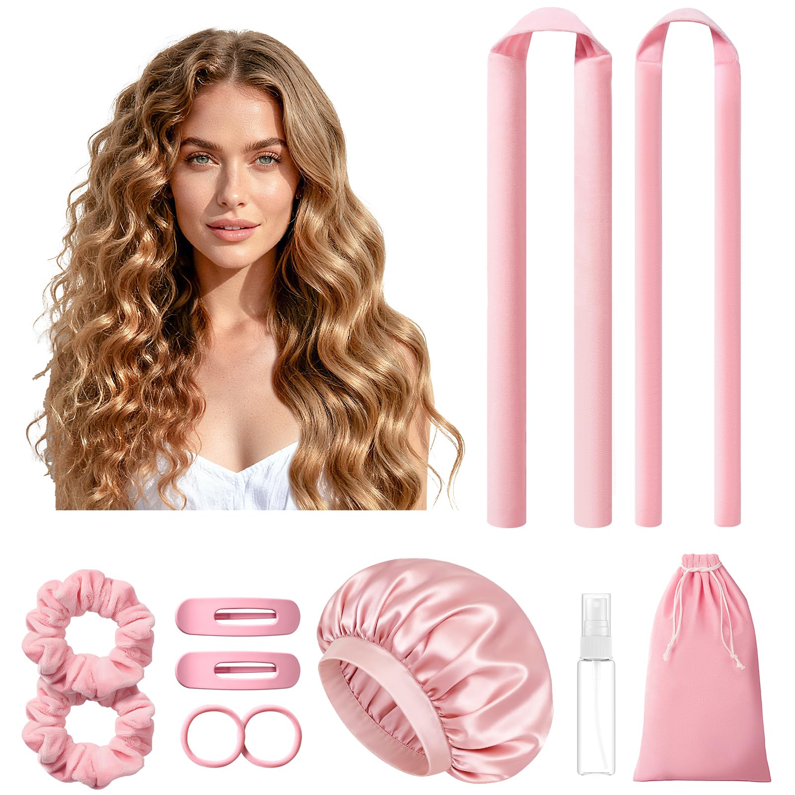 Complete 39-Inch Heatless Styling Solution: Kit includes everything for easy styling: 1.25-inch diameter curler, 2 scrunchies, 1 hair clip, and instruction. Perfect heatless hair curler for all hair lengths and types