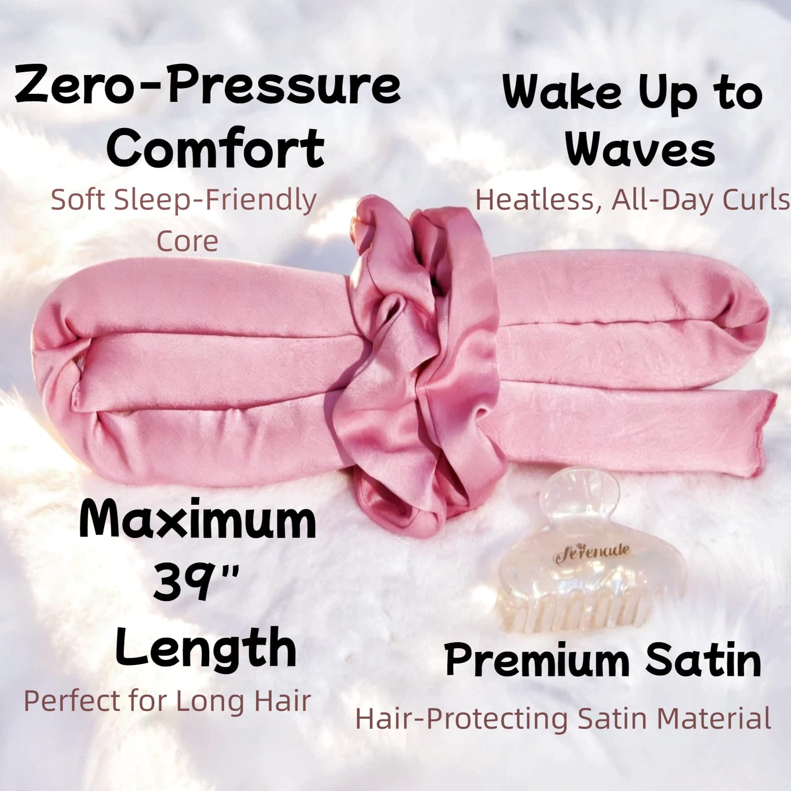 Premium Embossed Satin Hair Protector: Our exclusive embossed satin fabric enhances style while maximizing protection. This satin hair curler dramatically reduces friction, prevents breakage, and eliminates bed head frizz for healthier, shinier hair with every use