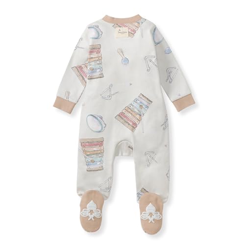 Description Wrap your little one in the soft embrace of Burt's Bees Baby Sleep and Play Pajamas. Our sleep & play pajamas are 100% organic cotton that is breathable and ideal for sensitive skin. Our Sleep n Play PJs are roomy for the little movers, and cozy enough for bedtime. Nighttime diaper changes are seamless with the diagonal zipper. The footed PJs are complete with a bee snap tab to keep little hands away from zipper pull. The non-slip ""bee grip"" on the footie provides extra stability for the little bees on the move. Whether it is thoughtful baby shower gift or stocking up on baby boy, baby girl or unisex baby essentials, these footed PJs are the perfect choice. Also, a great baby registry add-on! Every detail is designed with care, from the fabric's durability to the style, making these footie pajamas an essential in your baby boy or baby girl's wardrobe. Sizes Newborn to 3 months include convertible mittens to shield your baby from scratches. The pajamas are available in sizes Newborn, 0-3 Months, 3-6 Months, and 6-9 Months. These comfortable onesie baby pajamas come in a variety of fun watercolor prints.