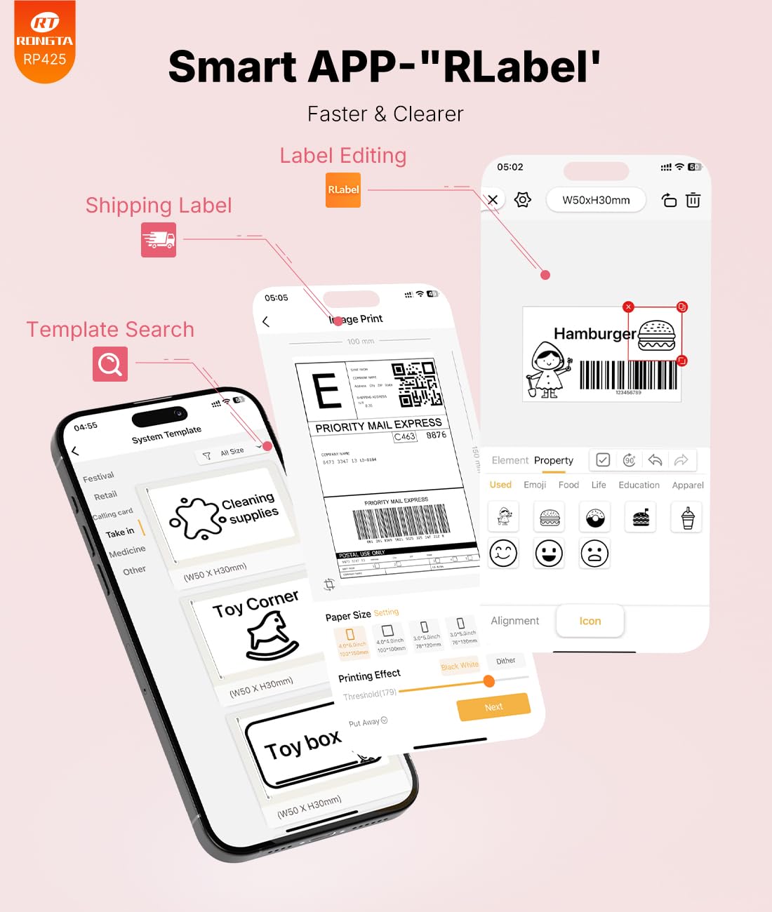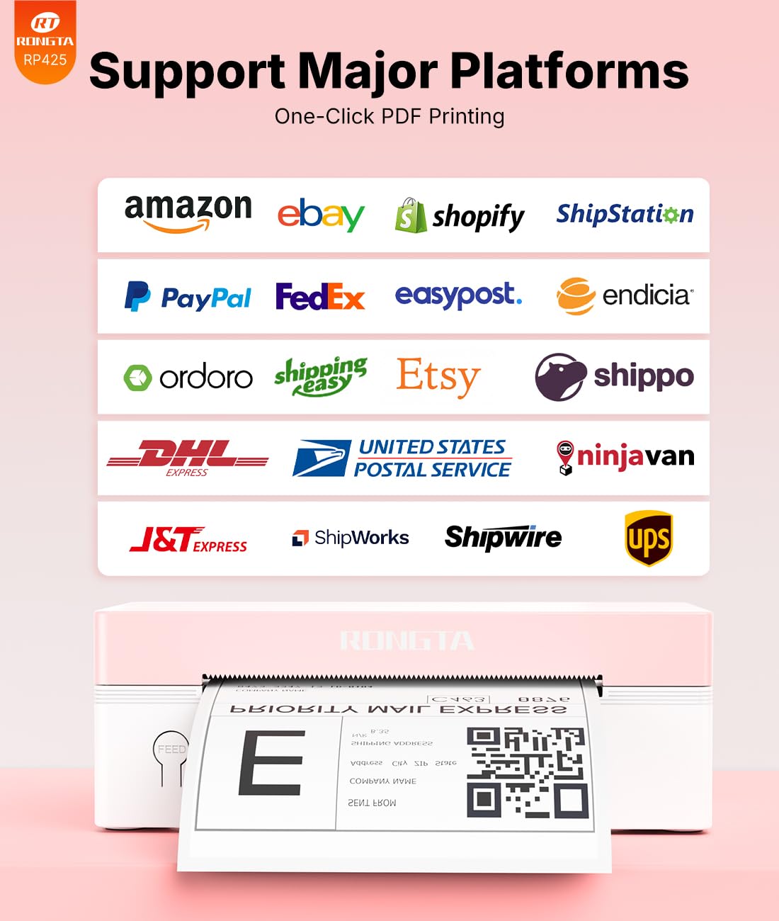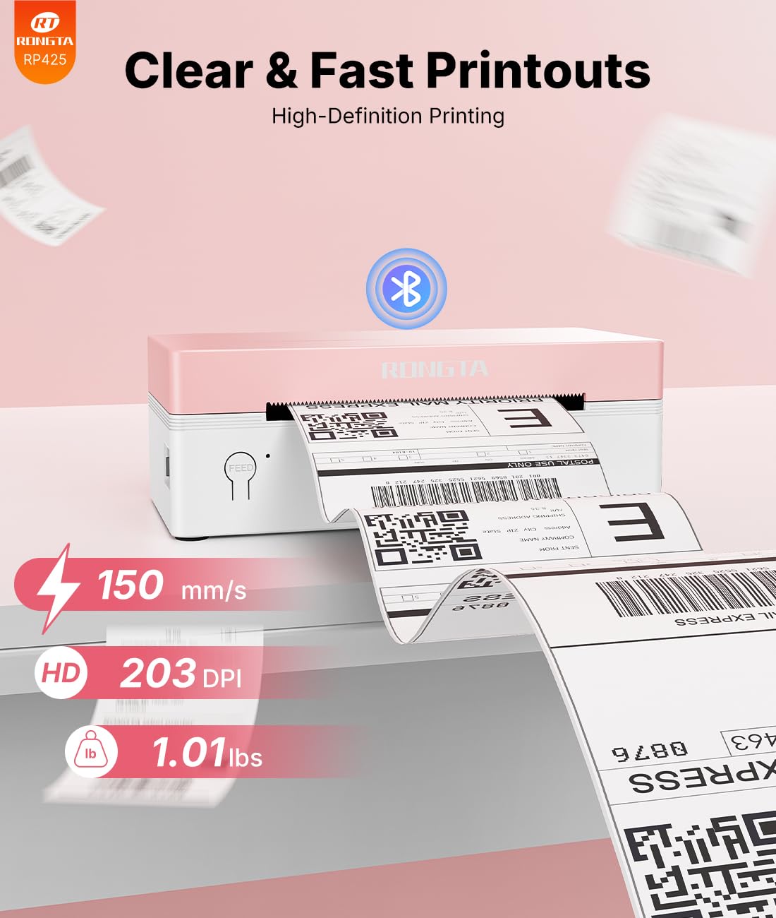 Rongta 4x6 Bluetooth Thermal Label Printer, Wireless Shipping Label Printers for Shipping Packages Small Business Office or Home, Compatible with iPhone Android iPad macOS Windows, Pink