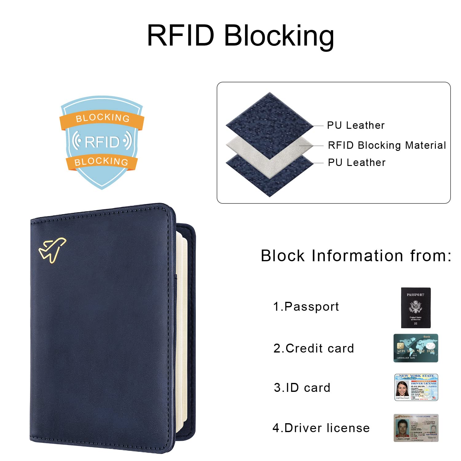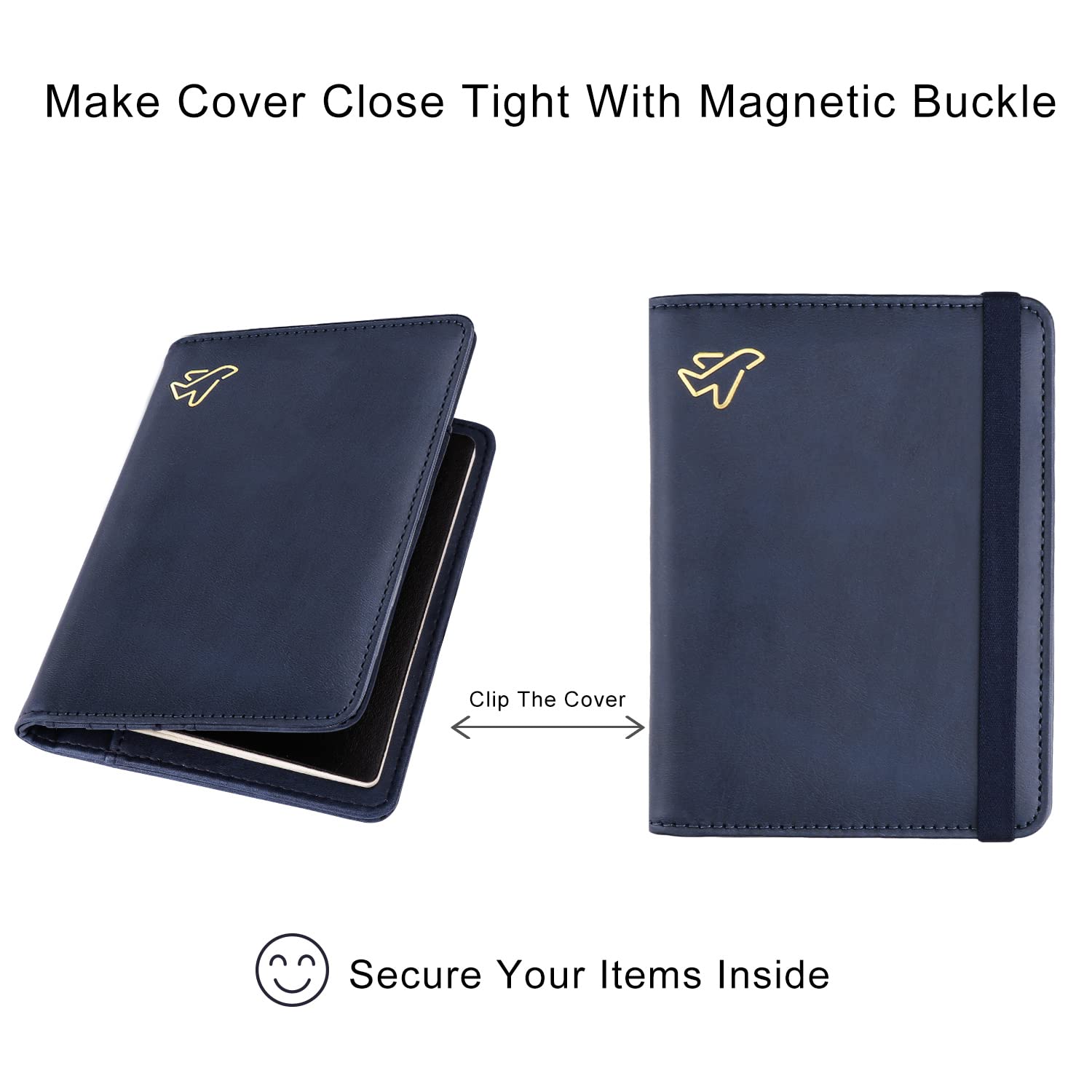 Security Passport Book Protector: With RFID blocking shield material inside, this RFID Blocking passport wallet helps prevent personal account information disclosure. Comes with an elastic strap which can secure items inside, rfid wallet will not open in your bag or luggage