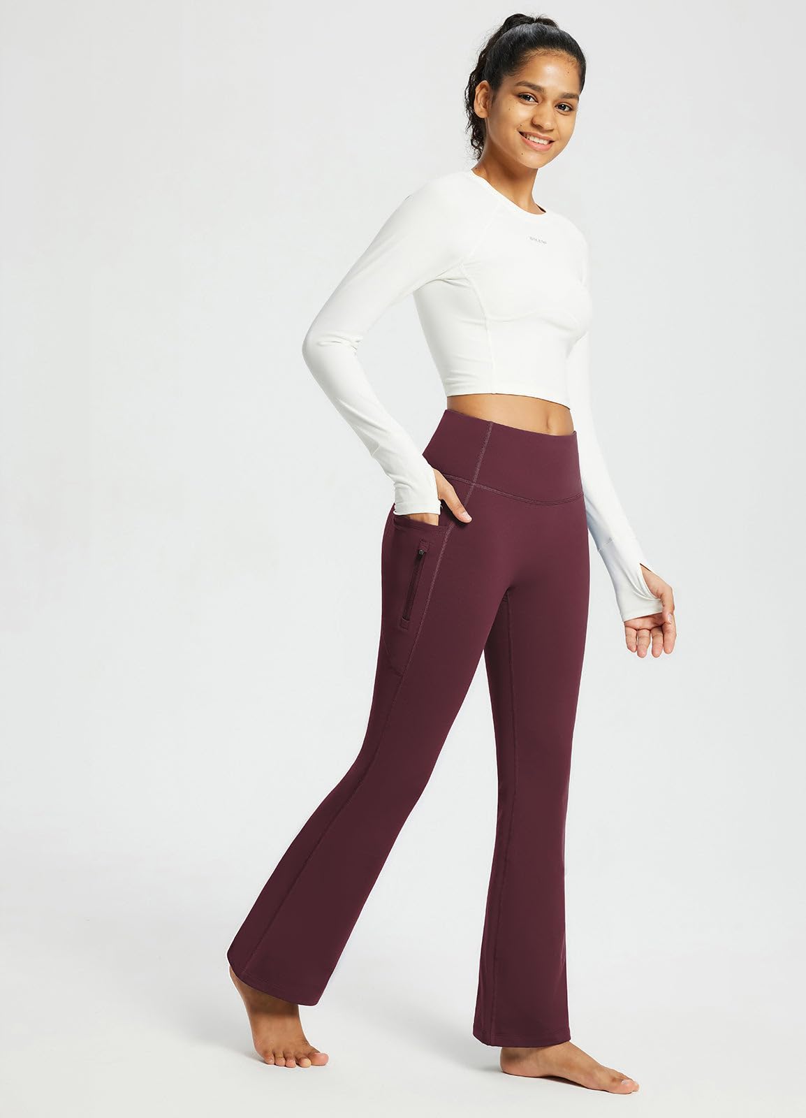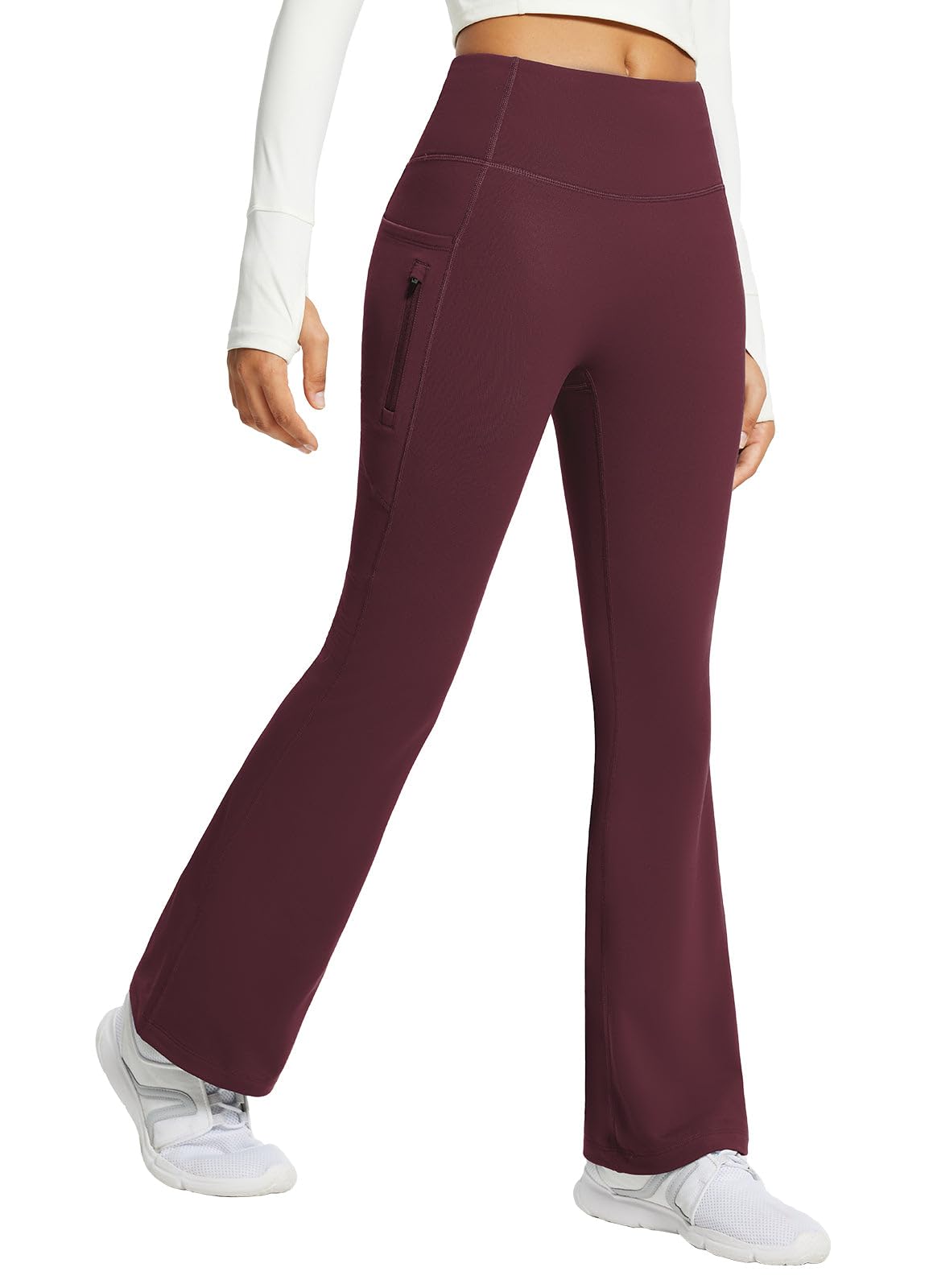 High Waist & Bootcut Design: These yoga pants feature a wide and high-rise waistband, offering gentle compression. Slightly flared pants shape visually slims the silhouette and fits any body type.