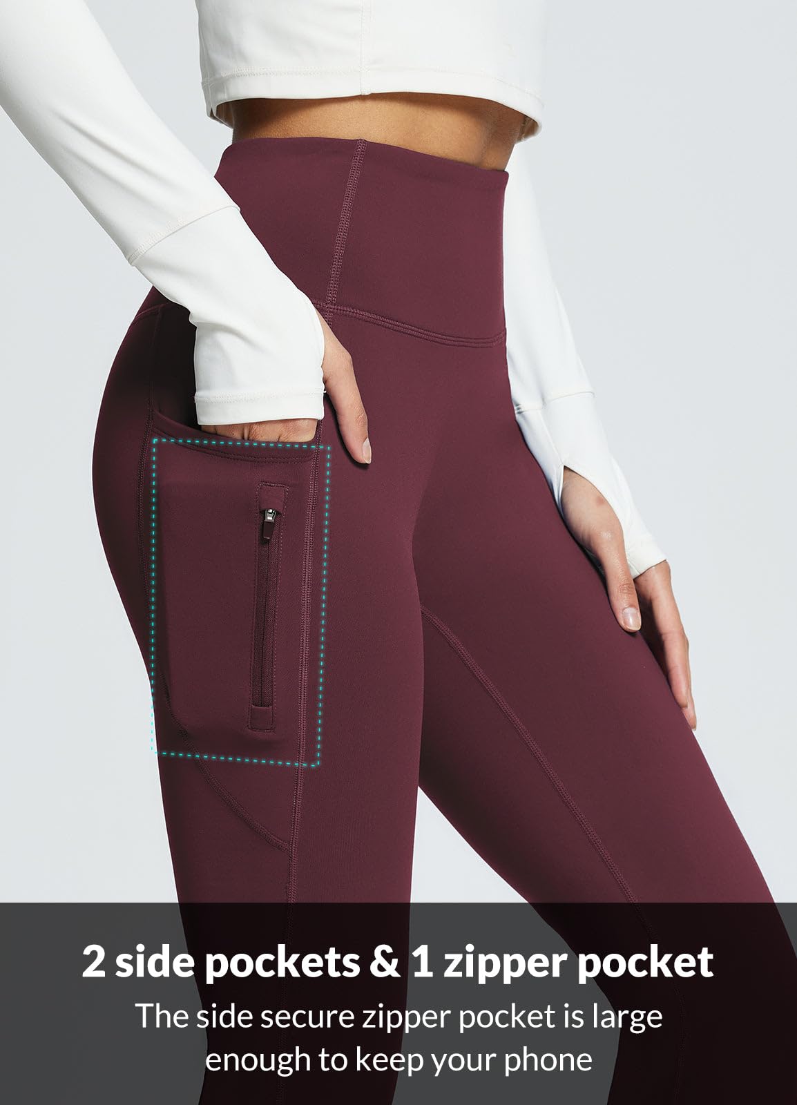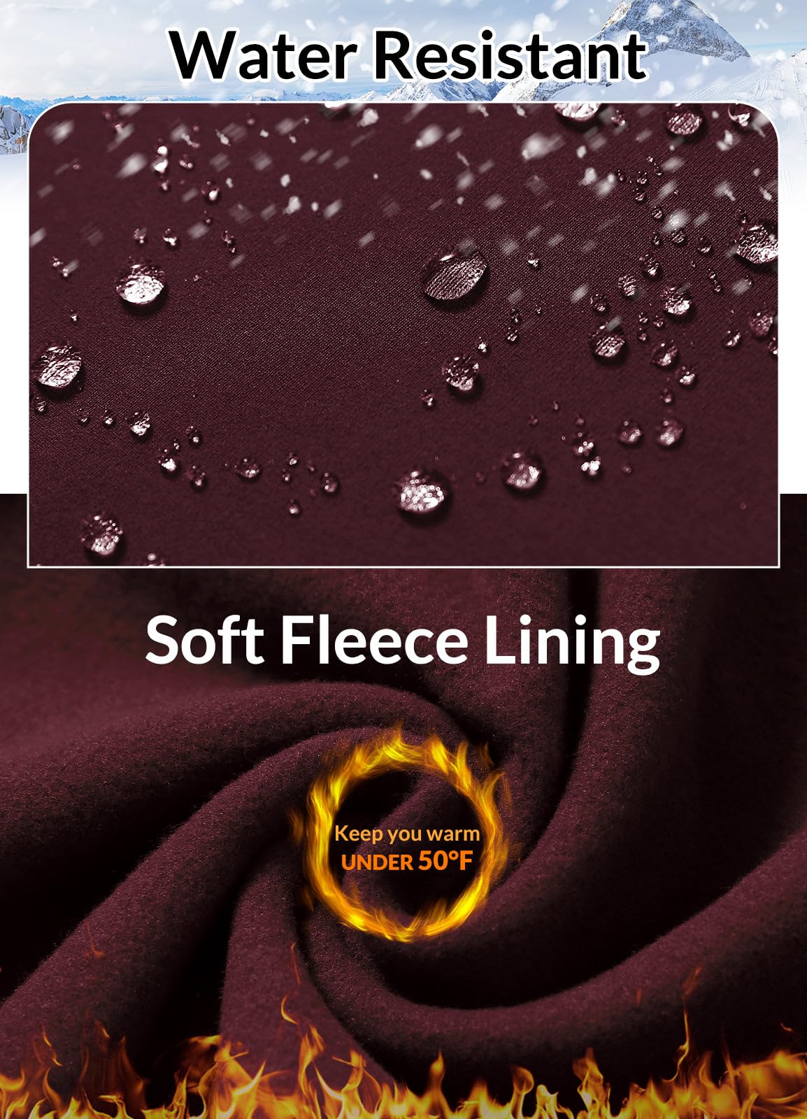 Feel the cold? Put on these fleece lined pants. These high waist yoga pants with pockets with soft fleece lining keep you super comfy and warm under 50°F, the water-resistant fabric is outside to better keep from wind and keep you dry on a snowy day.