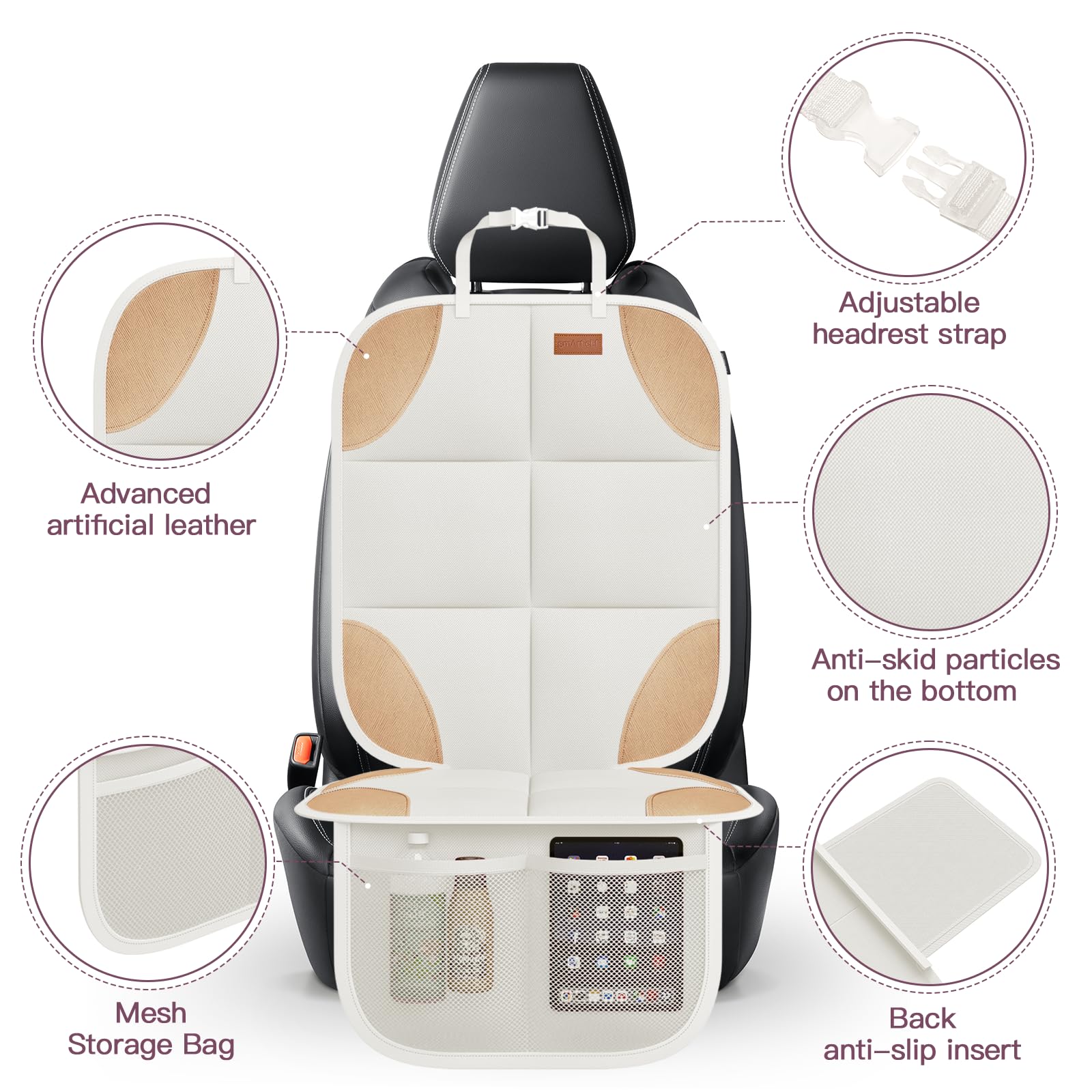 【Anti-Slip Design】- Dense non slip points on the back for better grip, whether the back or front seat, they stay in place. With adjustable straps, which can firmly tie the seat cover to the headrest. Won't slide off even if you move around in the seat. Perfect for those traveling with kids, their whole family, babies, or solo!