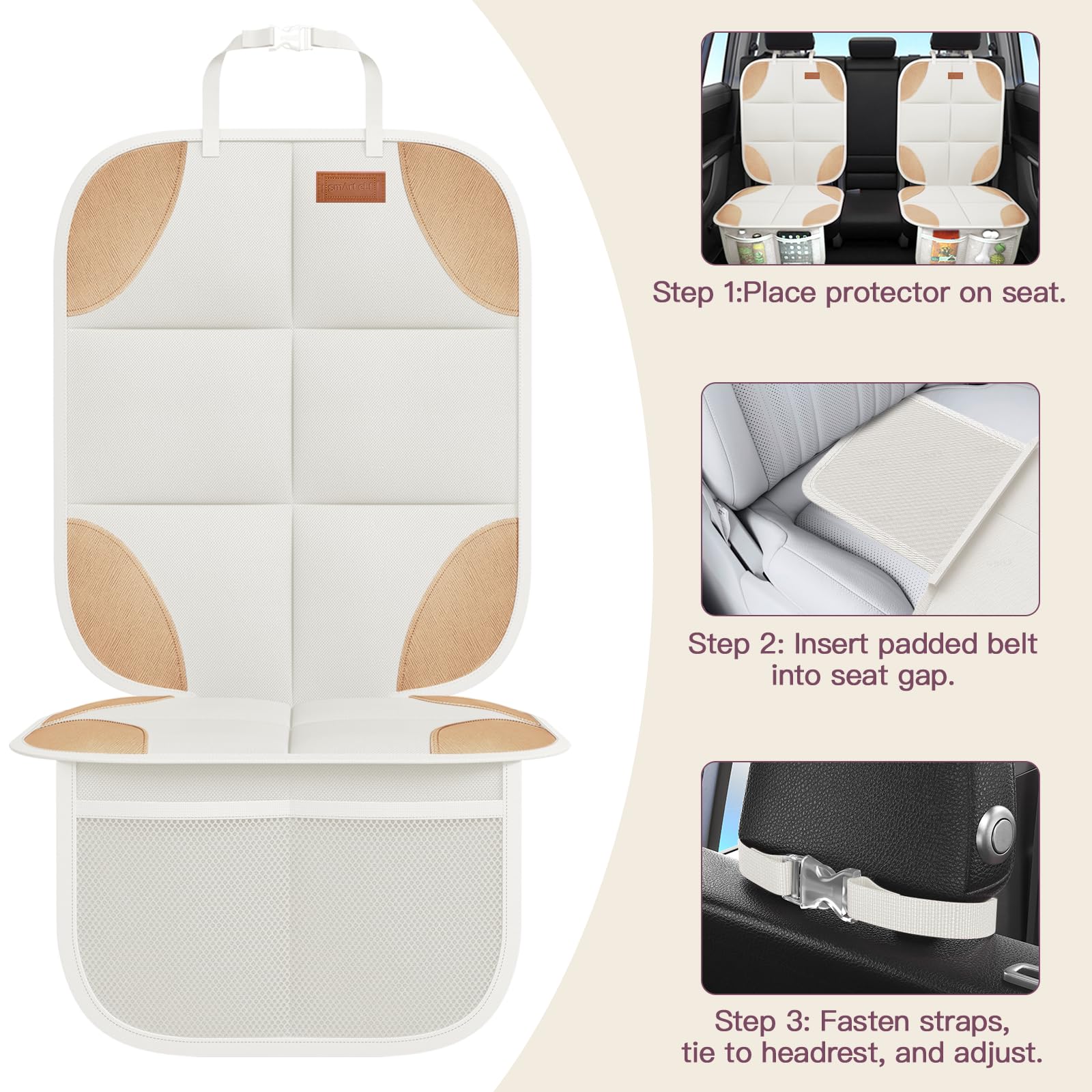 We understand that keeping your car clean and from spills and stains is a challenge with a family. That's why we created the SMART ELF Car Seat Protector - to keep your car looking brand new! ✔Car Seat Protector for Child Car Seat, 600D Fabric Waterproof Car Seat Cover with Non-Slip Backing ✔ Car seat protectors help protect your seats from stains, scratches, and general wear and tear. ✔ Our car seat protectors are high temperature resistance, they will not melt even in hot weather,no need to worry it stained the leather or fabric seat! Special Anti-Slip backing material to hold into position. Edge and corner PVC reinforcement for a more durable. 🚙Easy to install Step 1:Put the car seat protectors right on the car seat (backseat or front seat). Step 2: Insert padded belt into the car chair crevice to fasten the cover. Step 3: Fasten the safety straps. Then tie the cover securely to the headrest. Conform and adjust to your Need.