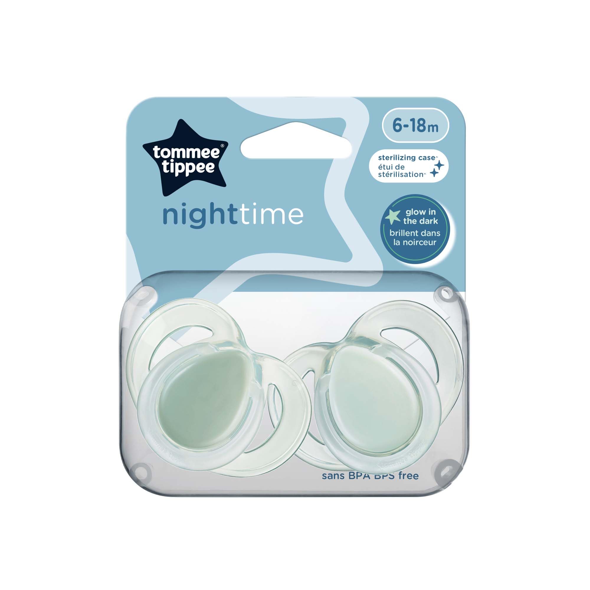 Glow In The Dark Technology: Tommee Tippee Night Time Pacifier uses daylight to recharge for a glow that helps you locate in the dark to place in baby's mouth