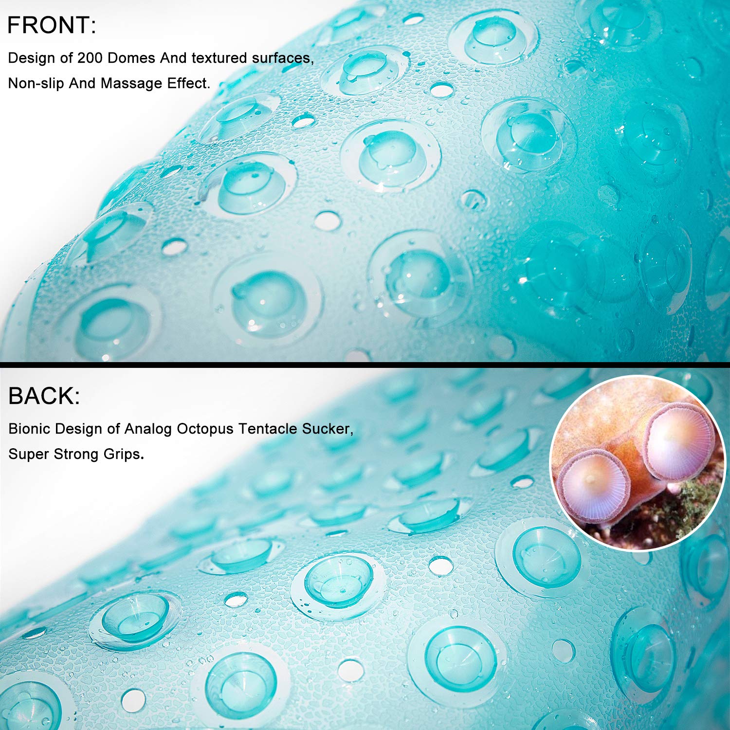 NON-SLIP LARGE BATH MAT: The superior bath and shower mat is 39 x 16 inch for maximum coverage, 30% Longer than standard bath mats that smaller leaving parts of your tub exposed. Our tub mats features 200 special large suction cups and help hold in place on smooth, clean surfaces. Perfect choice for home, spa, sauna, gym bath and shower and more.