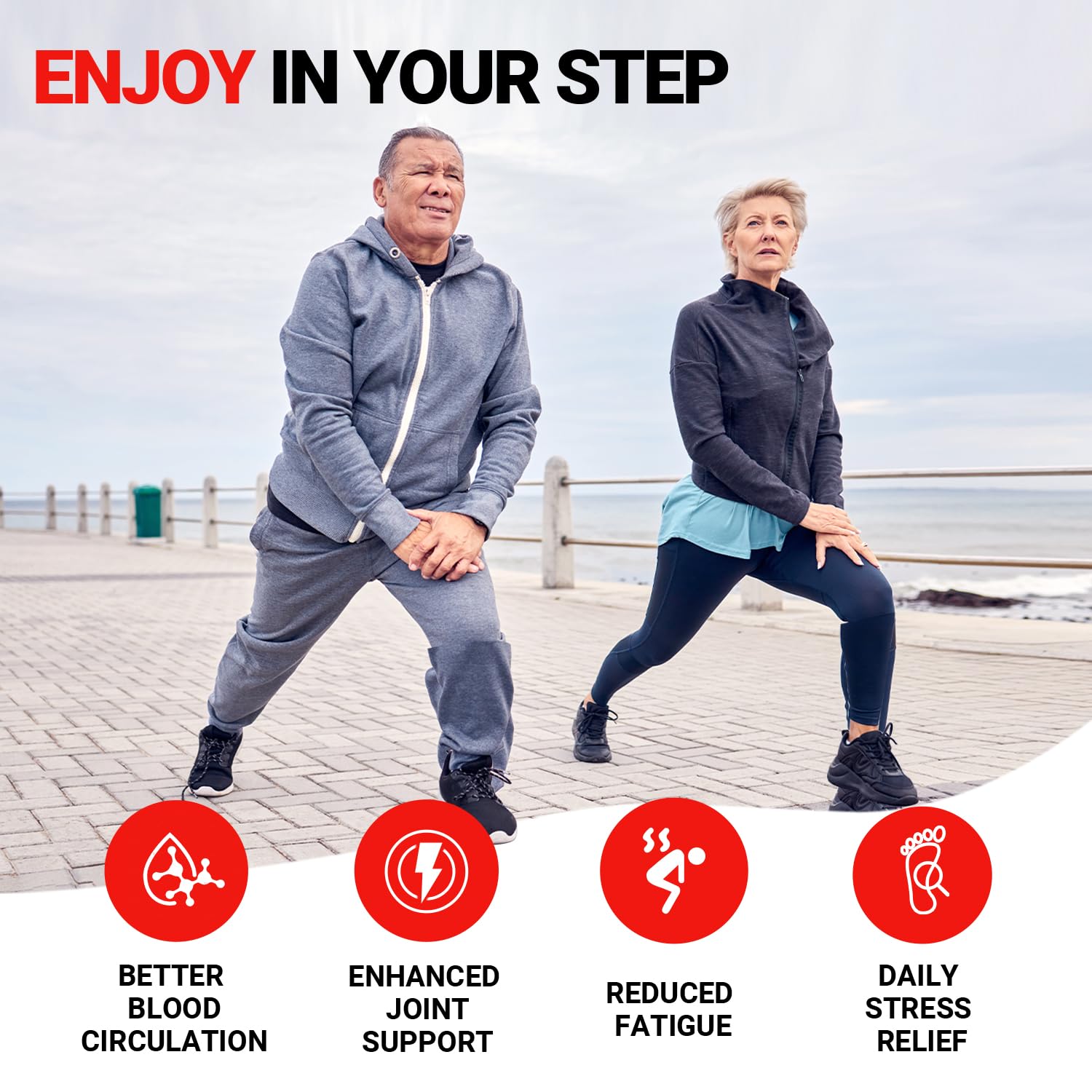 ALL DAY COMFORT MATERIAL :Durable EVA foam base and multi-layer cushion provide long-lasting support and comfort while walking, running and hiking. The fabric also helps keep your feet cool by sucking up all the sweat and moisture produced by your feet.