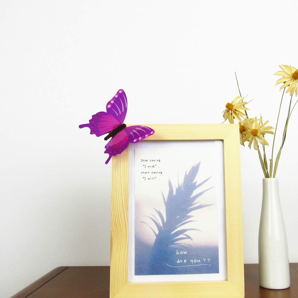 Product description Easy to Apply, Non-toxic, Environmental protection,Removable, Durable, Pressure Resistance, Shock Resistance, Moisture Resistance Apply to decor a party, Walls, Children room, Bedroom,TV wall, Office room, Birthday, Wedding,Christmas, , cars and so on It can be applied to decor a theme party, butterfly museum embellishment, children room, garden gadget, photography kits. The children always love butterflies. They often make out incredible works with the butterflies even better than you. This is a good way to develop the thinking ability and the practical ability of your children. Instructions: 1. Ensure the surface is smooth, do not stick on the rough or uneven surface. 2. Choose the place you want to apply, clean up the ash and grease, keep it dry and clean. 3. Use double-adhesive foam and stick the butterfly to the place you want them be. Specifications: Material:Plastic Color:Purple Blue pink yellow. Size:1.7¡¨~3.7¡¨ width,1.9¡¨~3.9¡¨ length Weight:65 g Package weight :70 g Notice:Color maybe have differences due to lights, screens, etc,thanks for your understanding
