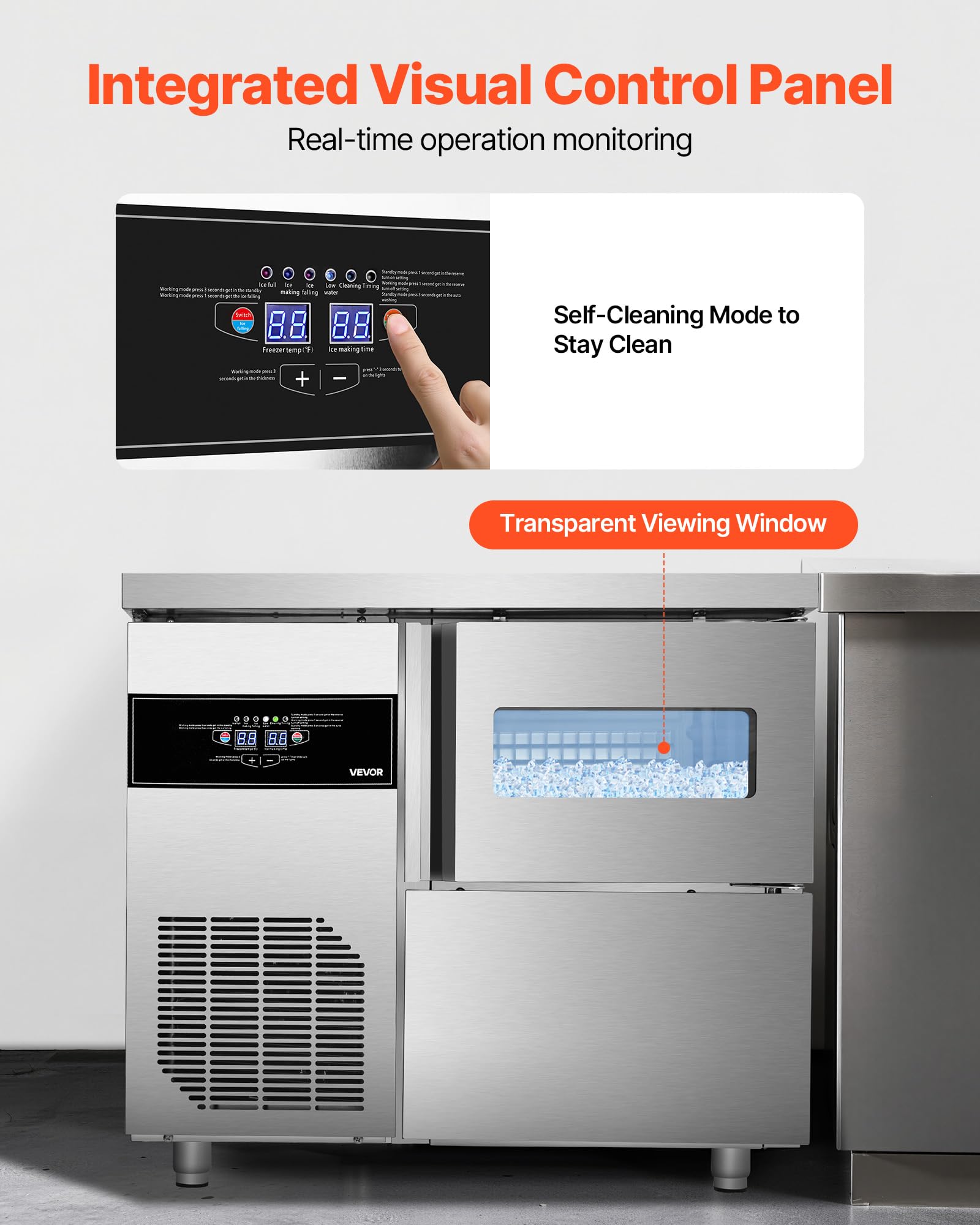 Superior Ice Storage & Insulation: Our freestanding ice maker is built with thick insulation foam and a sealed bin to reduce ice melt. It maintains ice quality and ensures a steady supply during peak hours, making it a reliable kitchen solution