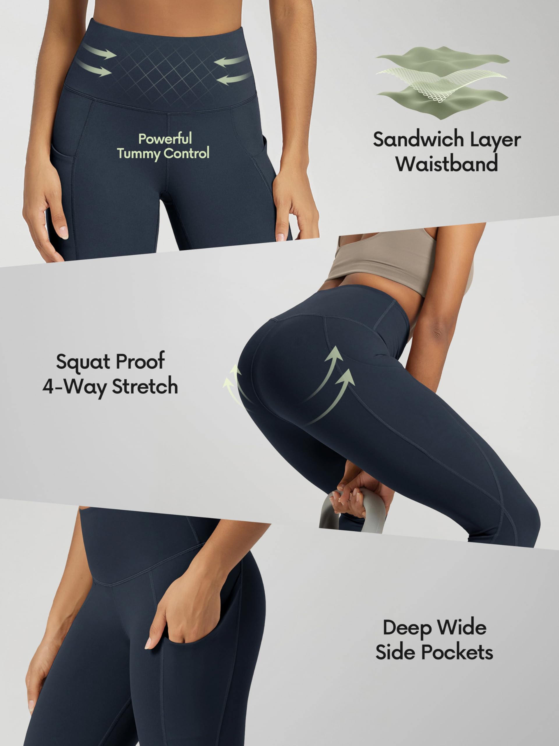 High-Rise Support: Sandwich-layer waistband with a secure elastic band delivers tummy control and stay-put coverage—no rolling, slipping, or falling down during bends or squats.