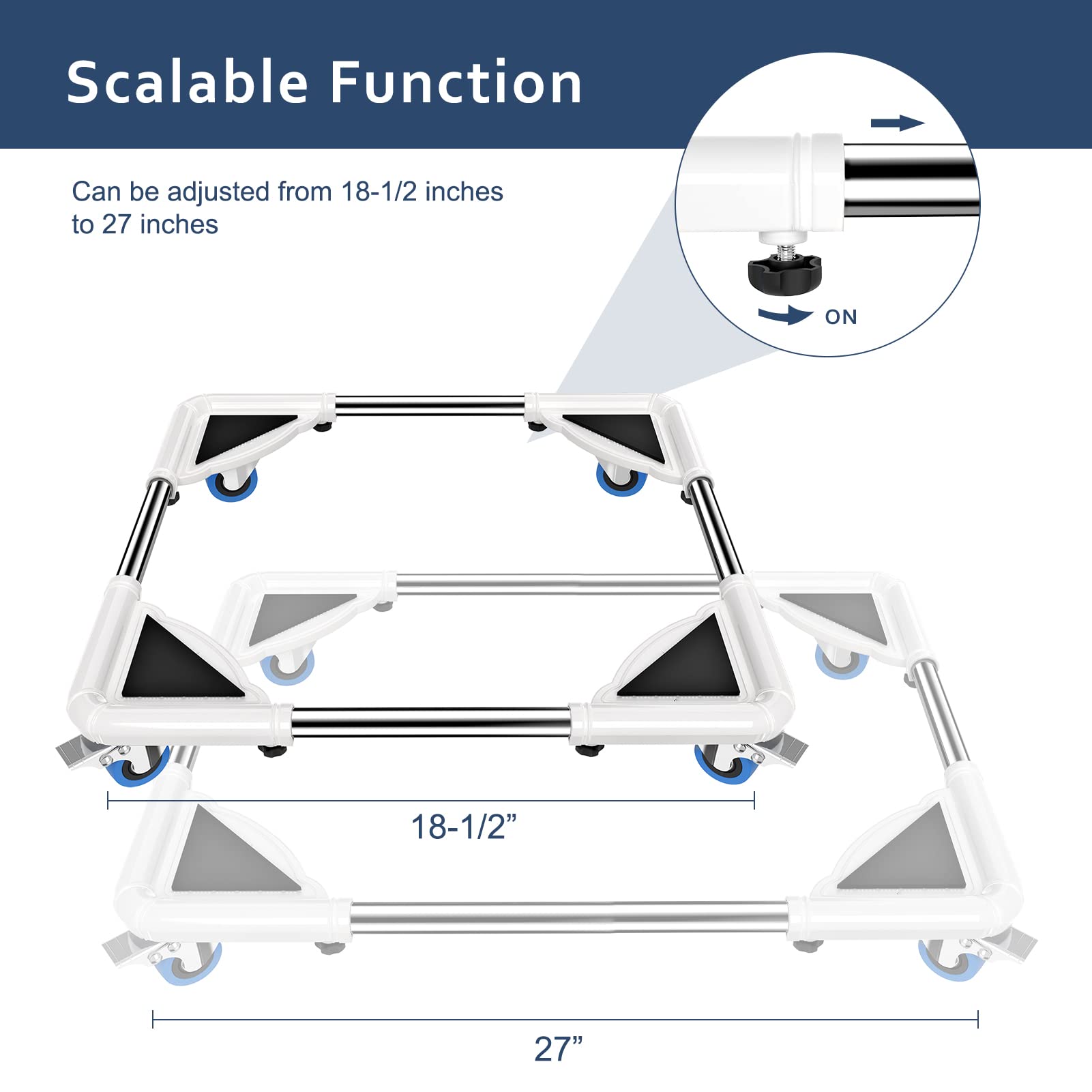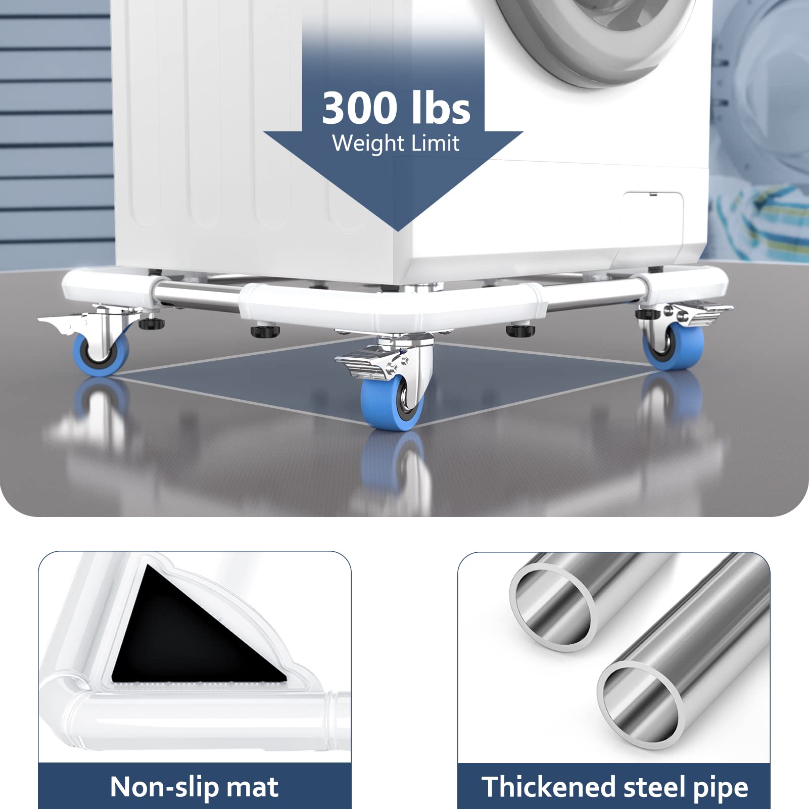【Waterproof and Shockproof】- Besides transport heavy loads , washer and dryer pedestals can also absorb excessive vibrations through 4 high-quality PVC pads. So you can get quiet experience when your fridge or washer machine working.