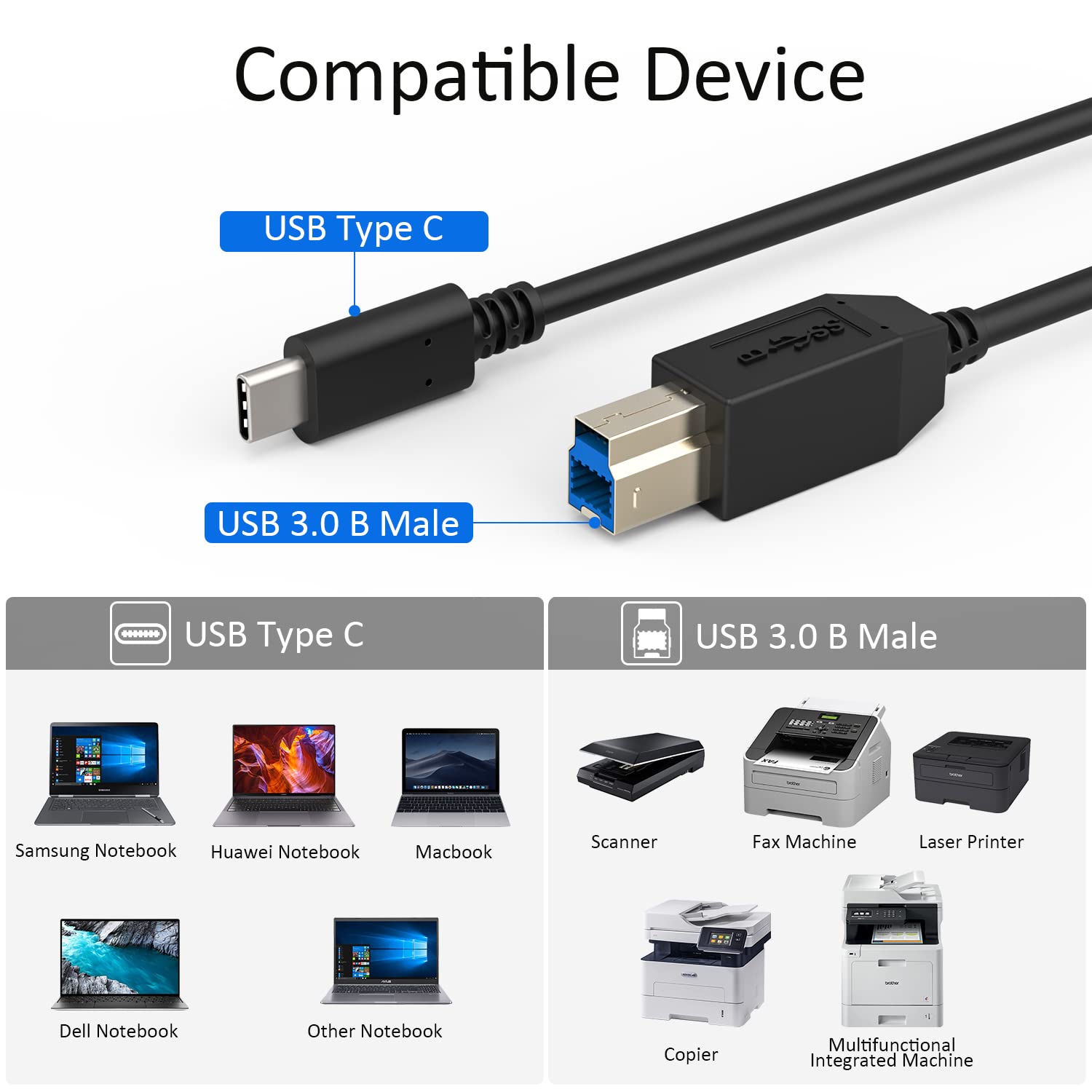 2 metres USB Type-C to USB Type-B 3.0 Cable ★ Please Note: This is NOT Compatible with USB 2.0 device ★ Check the connector head matches what you need.