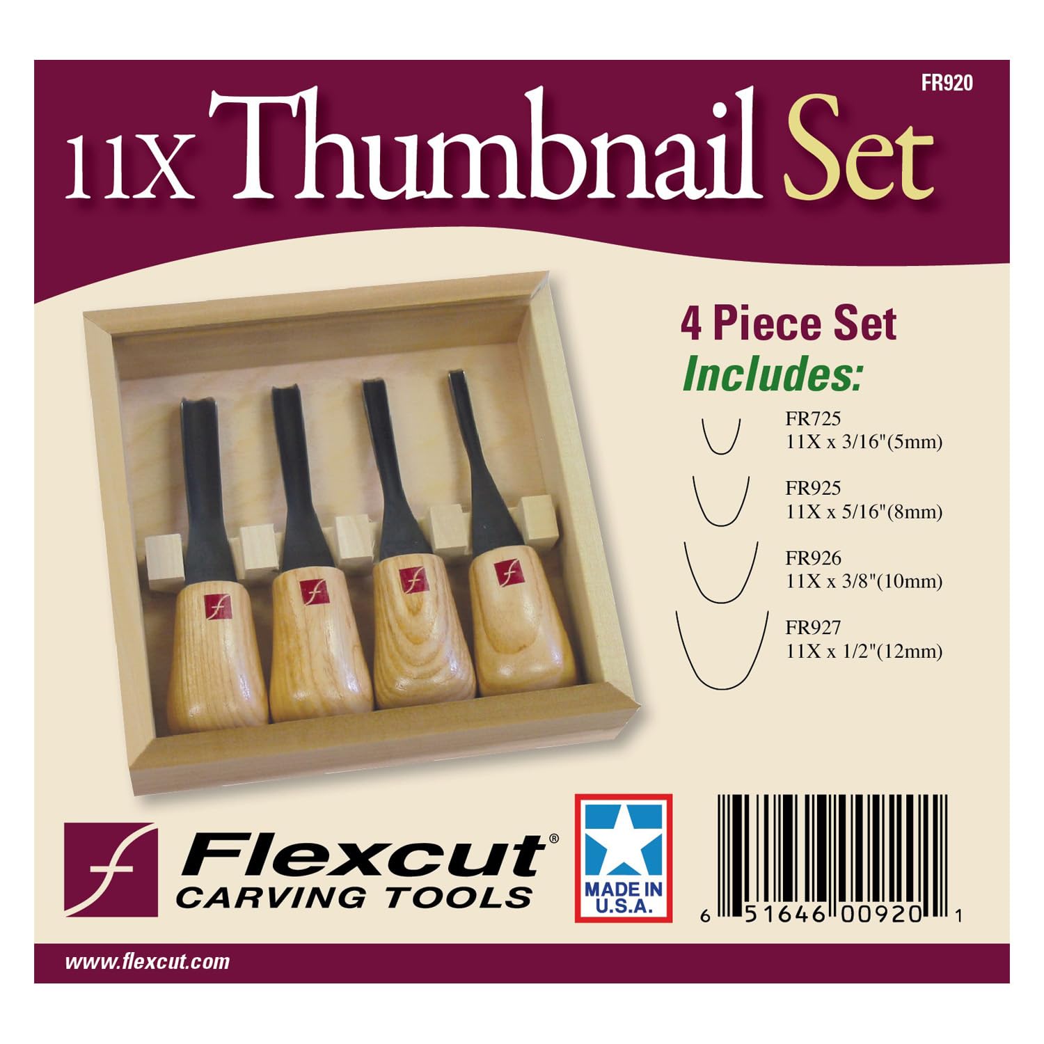 Set includes 4 #11 Thumbnail gouges at 3/16,5/16,3/8 and 1/2 inches wide