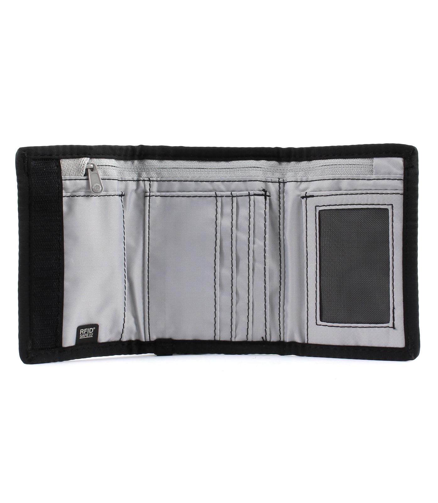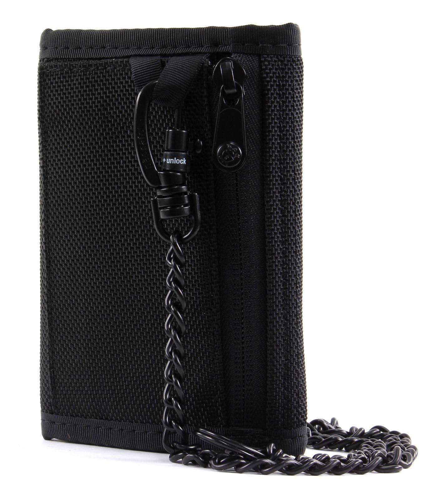 Description Keep your cash and cards secure in this rugged anti-theft wallet. With slots for cards, a zip-compartment for bills and an easy-access slot for coins, this tri-fold packs plenty of punch. Its RFID safe material protects you from skimming and the security chain deters pickpockets. Explore the city feeling secure.