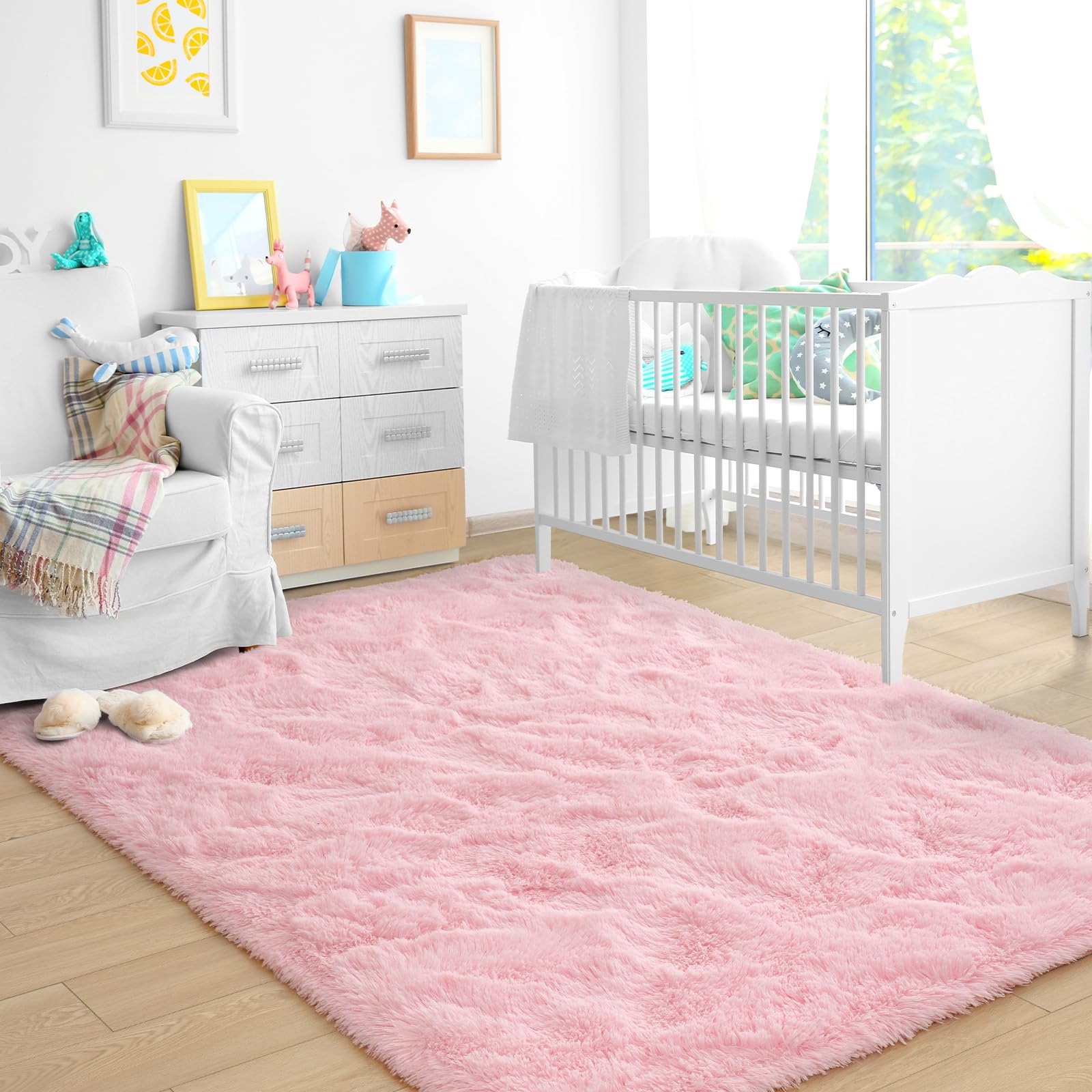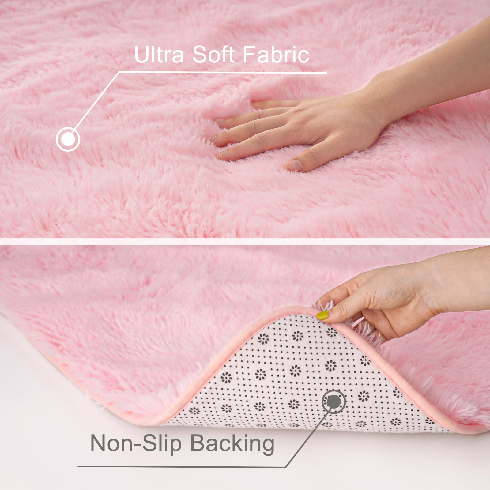 Non-Slip Backing: The nursery shaggy rugs have thousands of non slip rubber dots that helping to stay in place, ideal for wooden or other material floor surfaces and it doesn't move, especially suitable for families with children and pets, providing you with a peaceful and cozy area