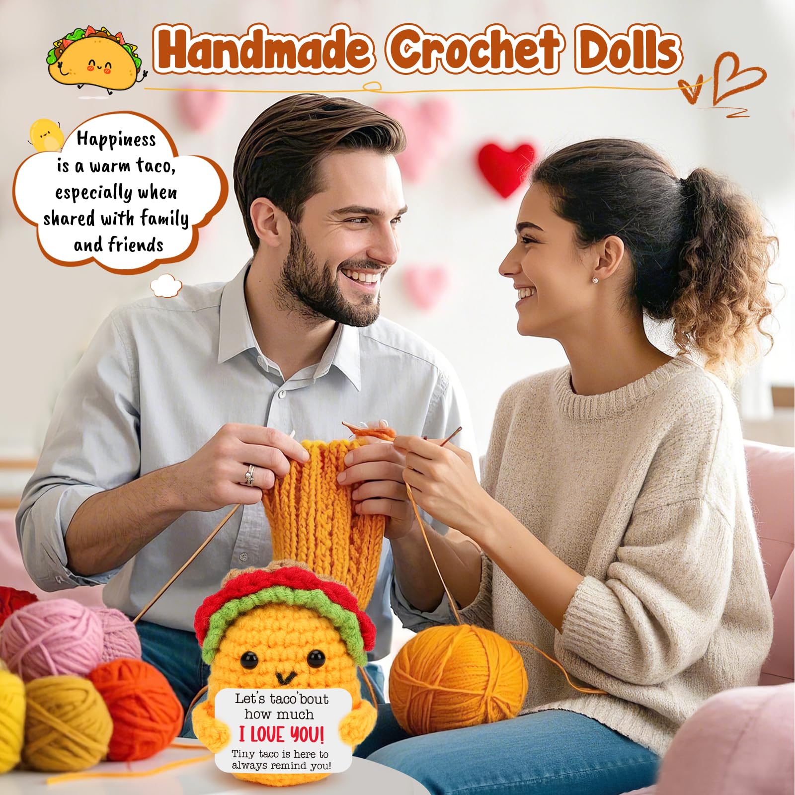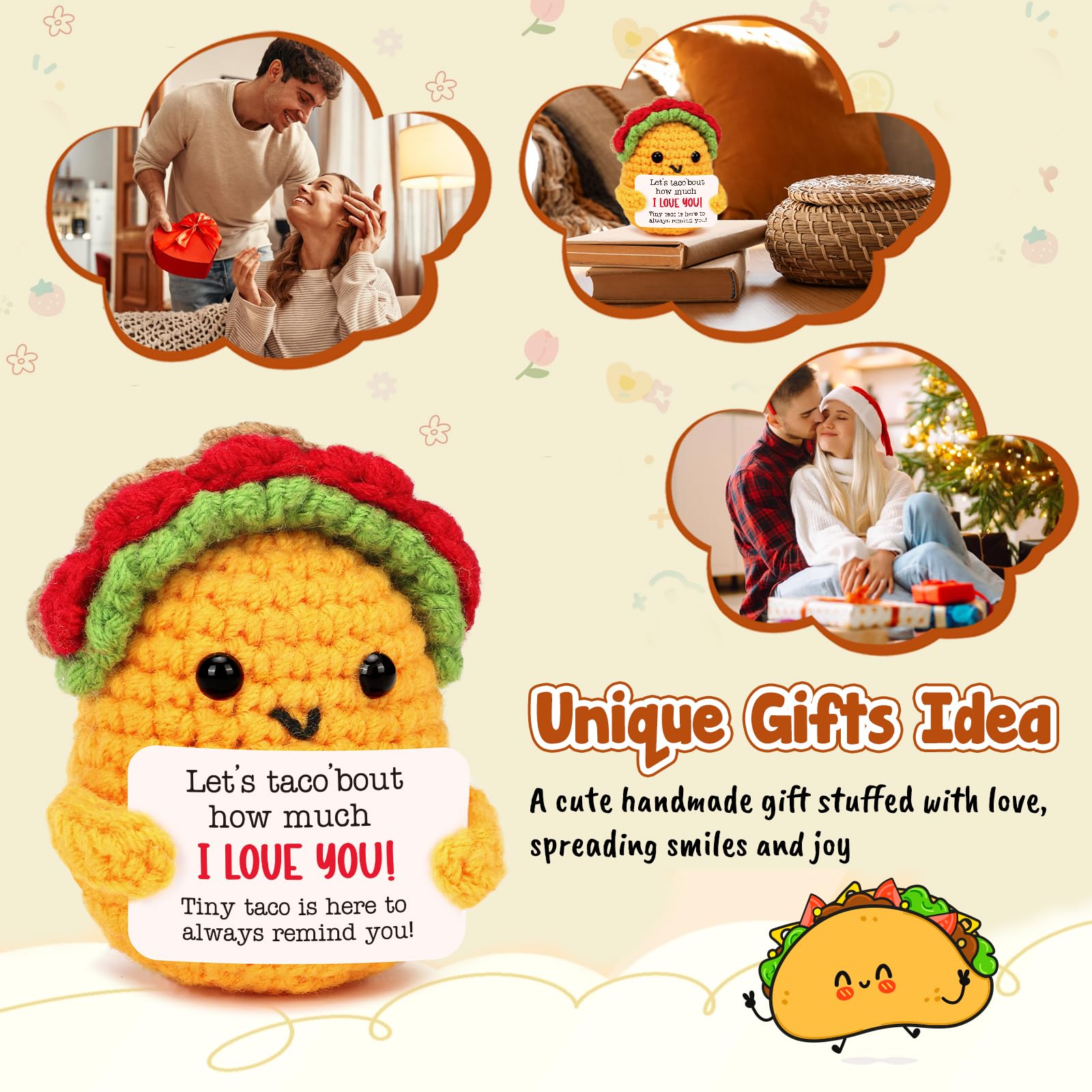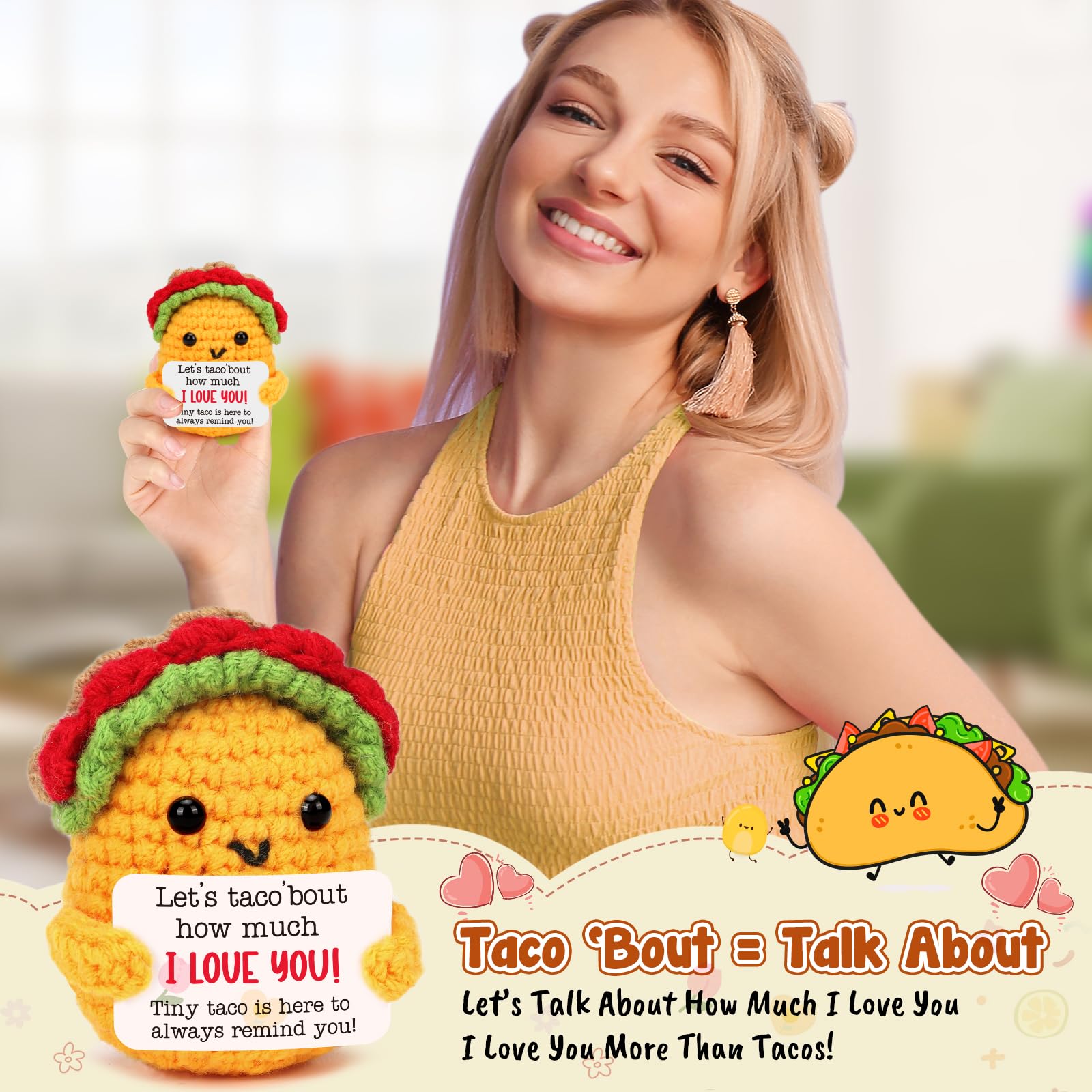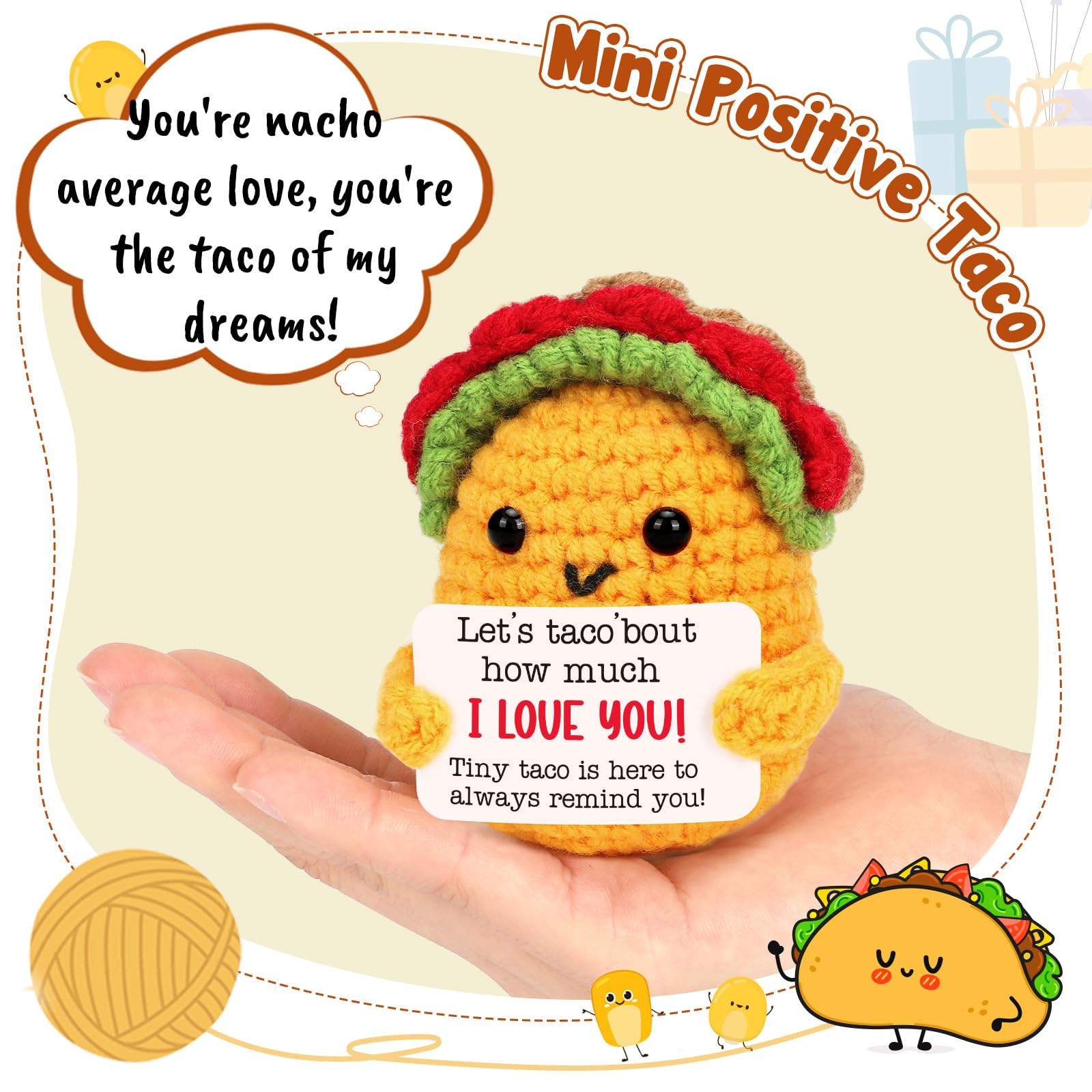 I Love You Gifts for Her /Him: this mini positive crochet taco is such a cutie, adding a new look for Taco Tuesday, fun and attract attention to your home and office. Such a cute gift for women, men, best friend, sister, daughter, son, mom, dad and coworker