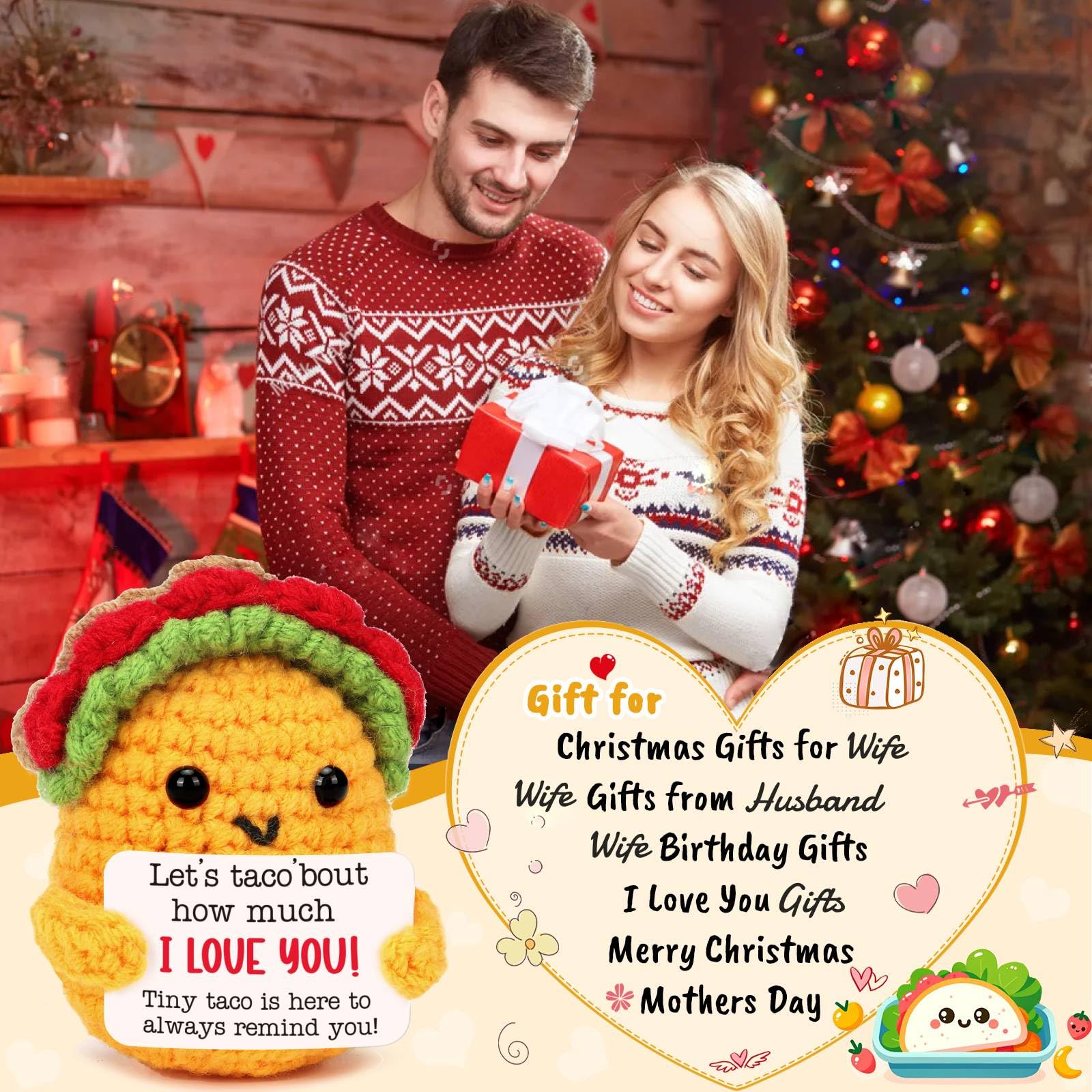 Christmas Gifts for Husband Wife: soft handmade crochet taco brings us smiles, joyful and encouragement, a cheerful companion to help lift your spirits and spread smiles. funny Christmasy birthday gifts idea for women men wife husband boyfriend girlfriend fiance