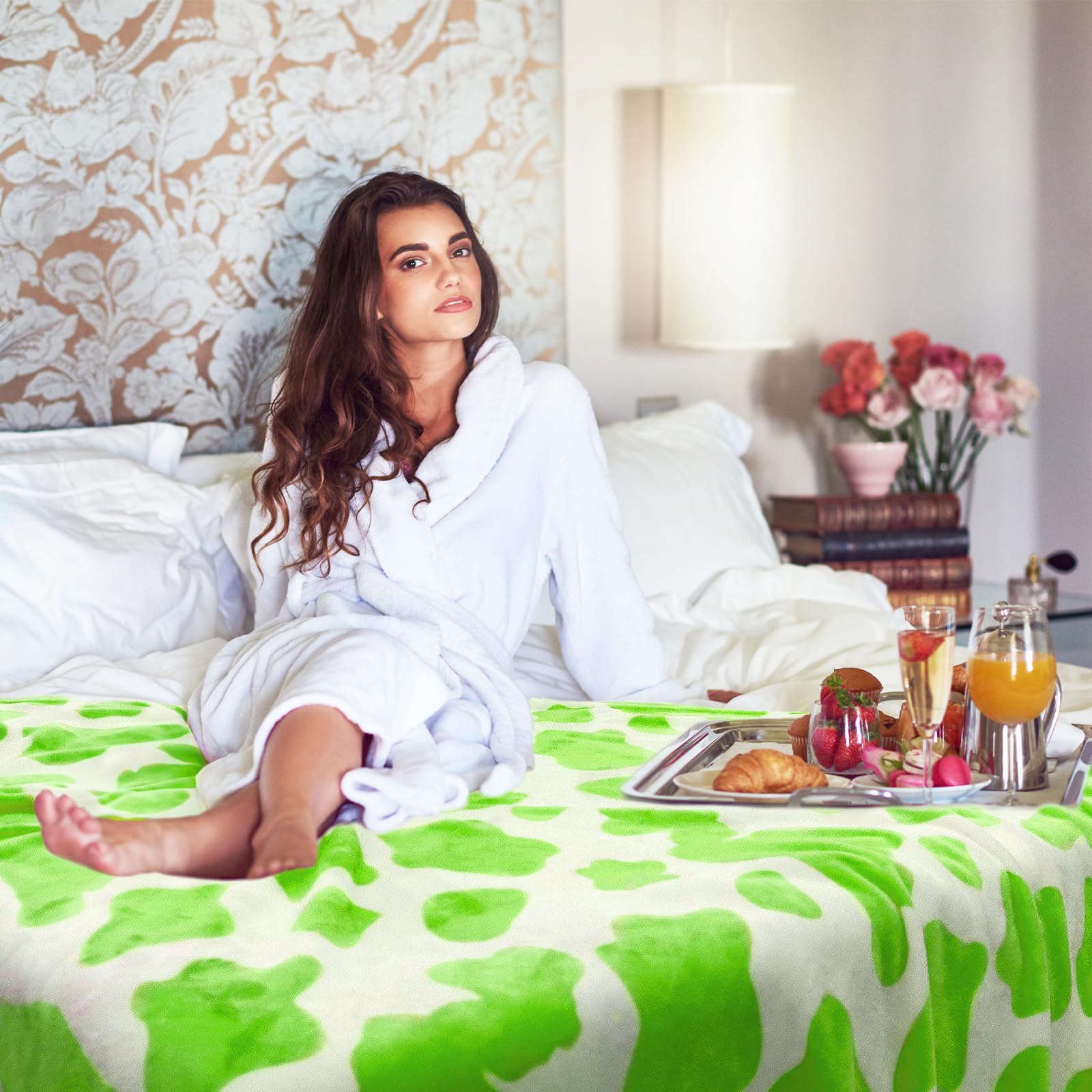 SOFT COW PRINT BLANKET AND THROWS-green blankets are made of flannel fleece blanket and cow print fabric.blanket green throw is a more lightweight throw blankets for couch and warm blankets for winter. this double-faced green blanket effect turns this western throw blankets into a cute cow print blanket. green blanket throws for couch soft also are suitable as a indoor outdoor blanket and also can be all season blanket,such as fall throw blanket,air conditioner blanket.