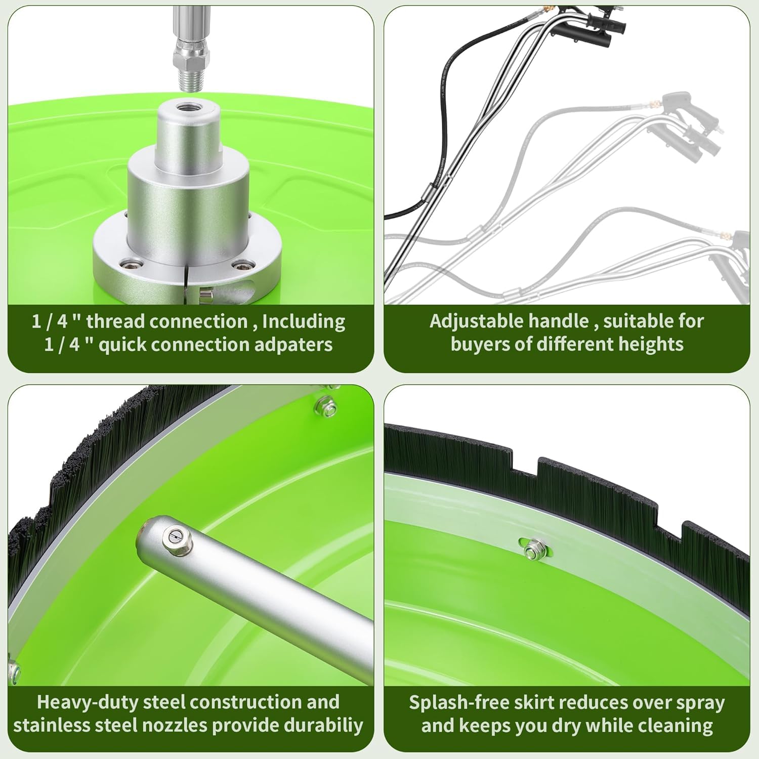 PREMIUM QUALITY – Built with durable stainless-steel and a heavy-duty bearing for lasting performance; the splash-free skirt minimizes overspray to keep you dry. Features an adjustable handle and 4 smooth-gliding castors for effortless control, saving time and energy during operation.