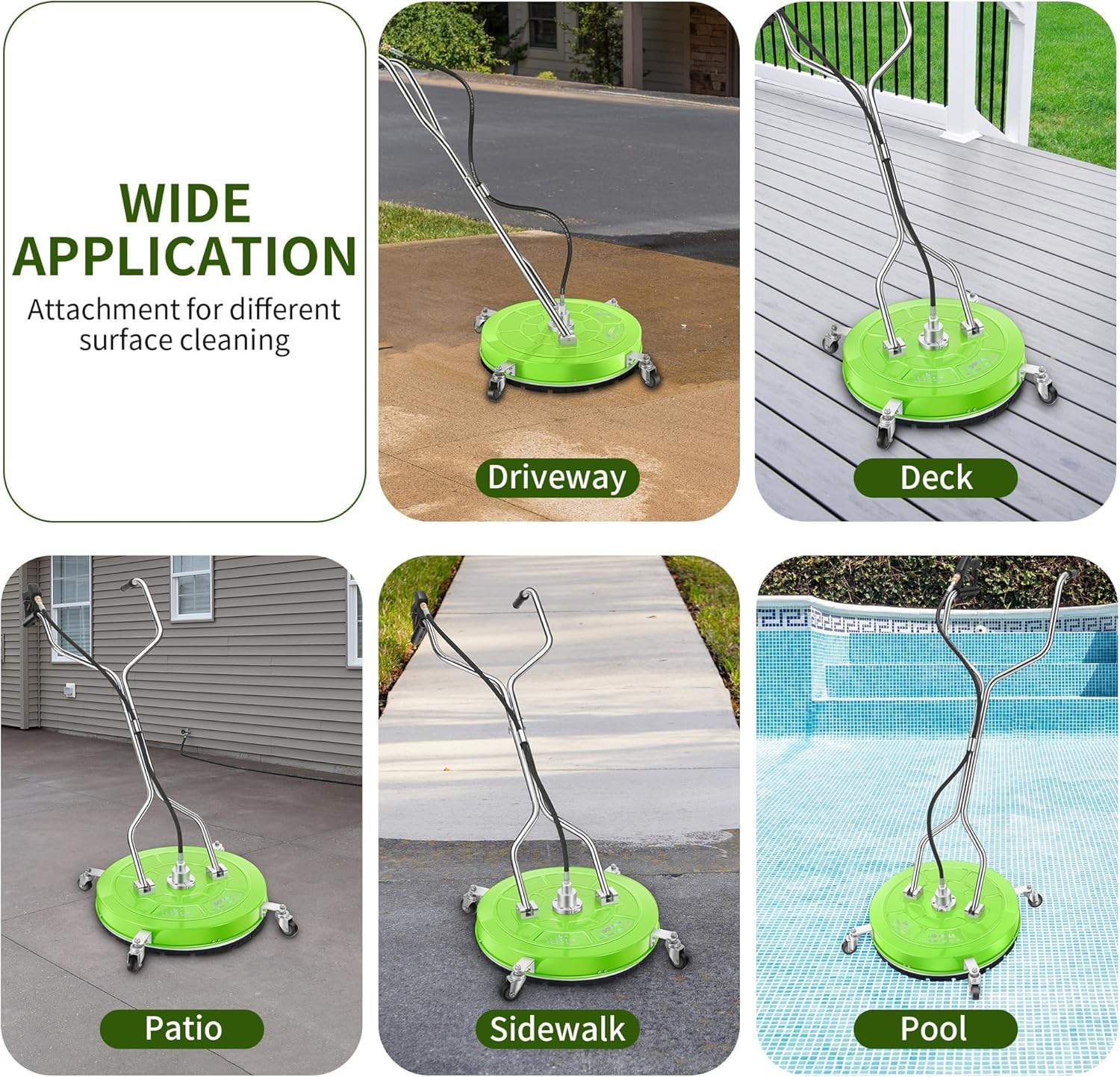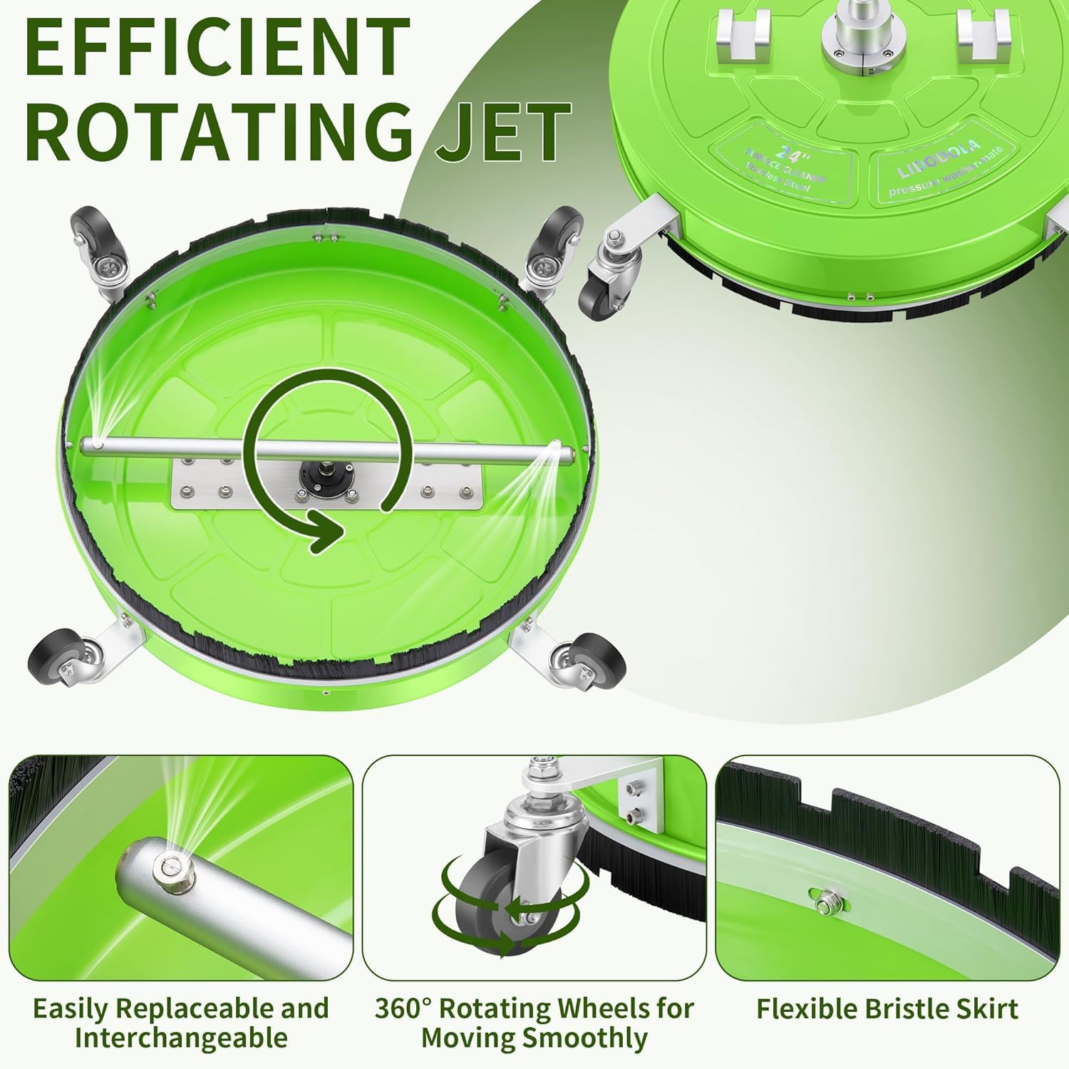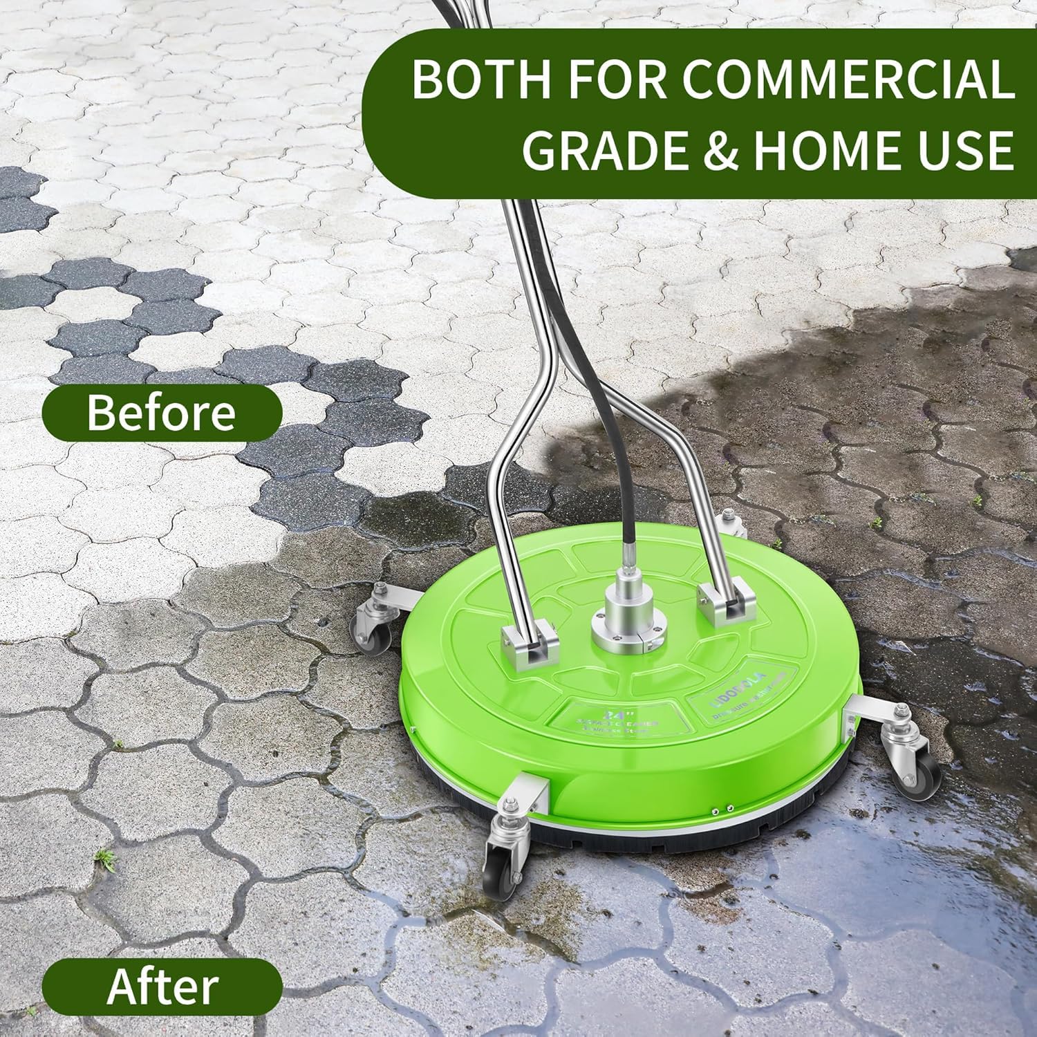 PROFESSIONAL CLEANING – The Lidodola surface cleaner delivers commercial-grade cleaning across a 30" wide area, effortlessly removing stubborn stains on large flat surfaces like patios, driveways, decks, and sidewalks.