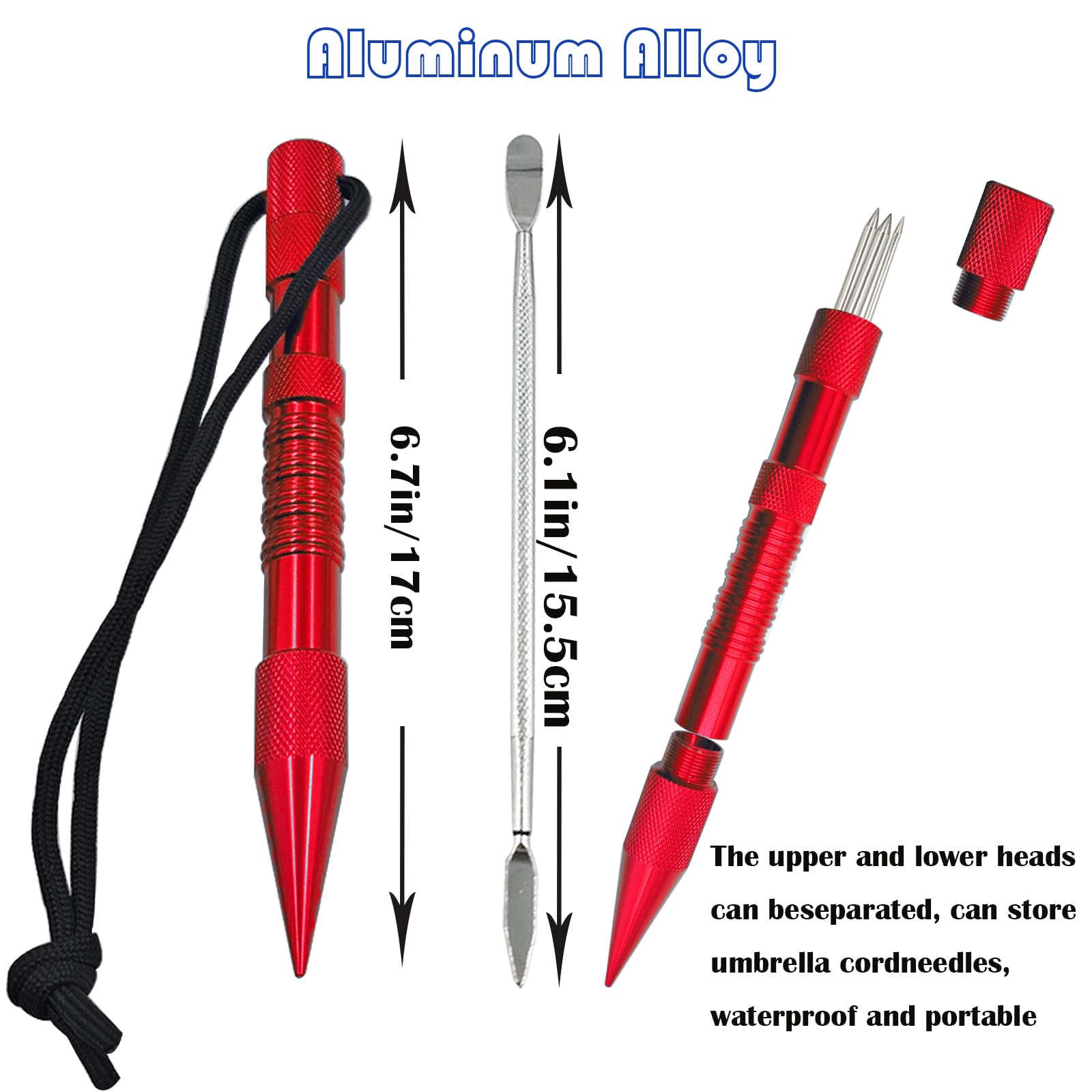 Marlinspike:Detachable heads double as waterproof compartments for needles; tapered tip easily loosens knots
