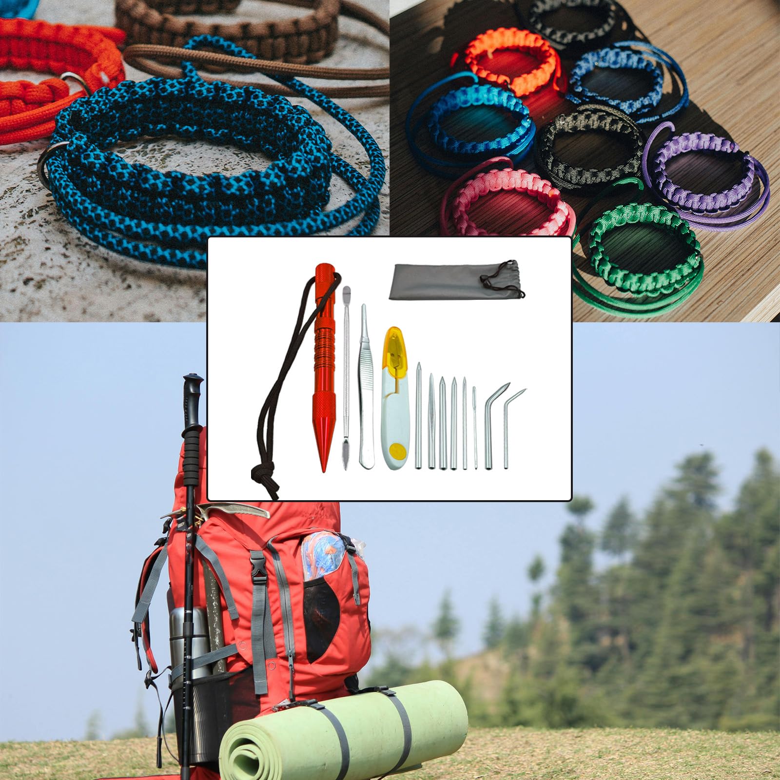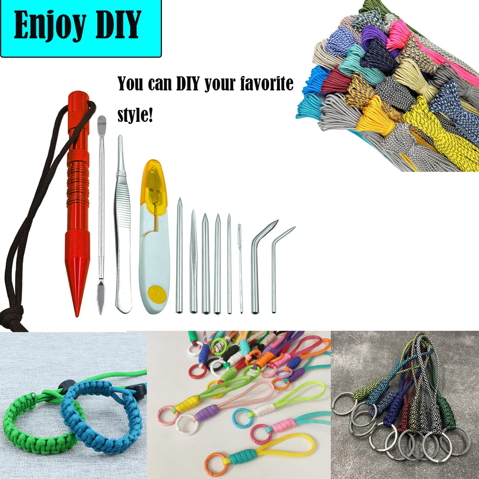 Paracord needles range from 2mm to 6mm diameters, compatible with paracord 550/750, leather laces, and nylon ropes.Smoothing tool 172mm burnishes edges; U-scissors cut cleanly without fraying